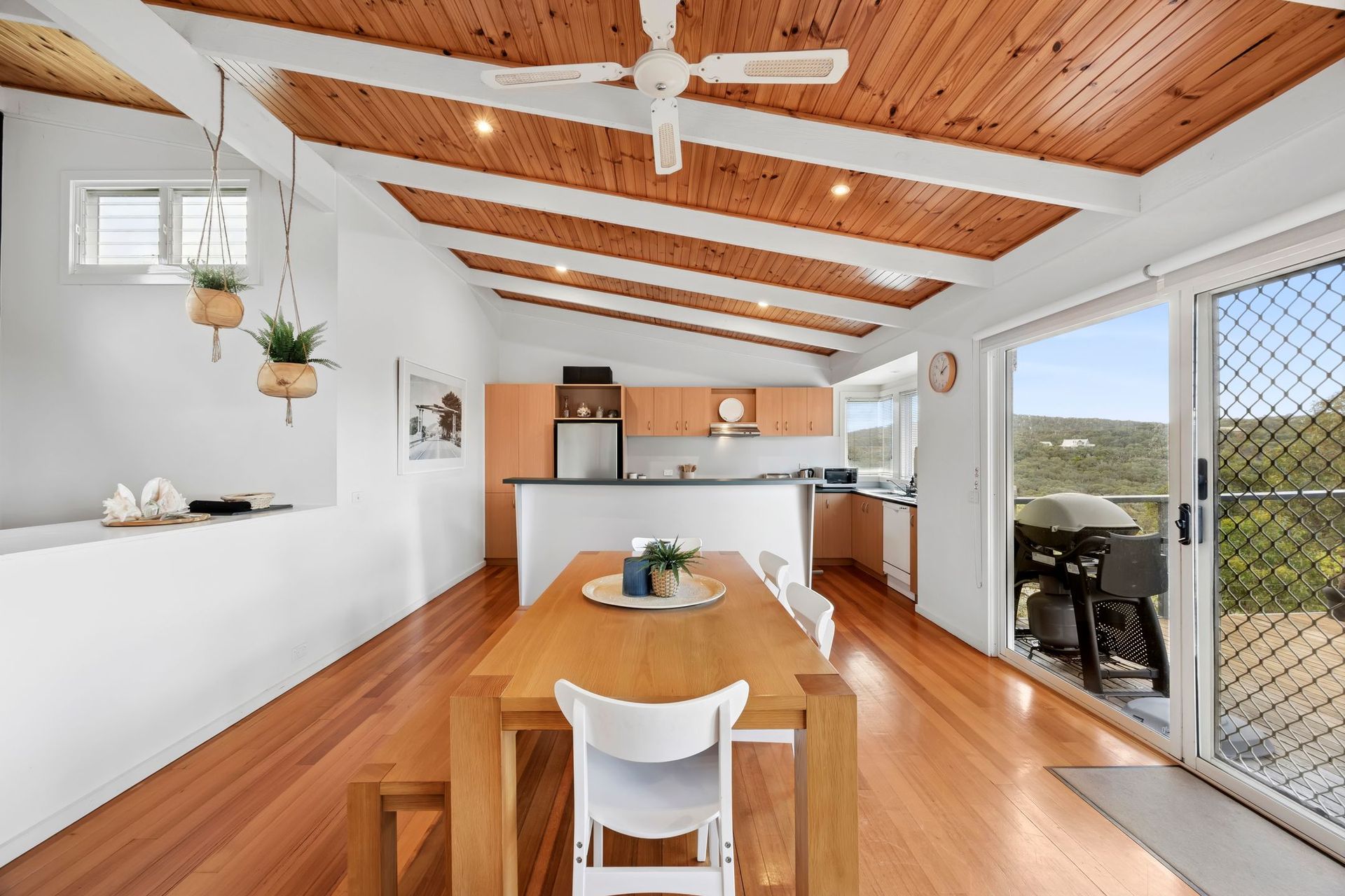 The home features three comfortable bedrooms, thoughtfully arranged to provide restful nights after days spent by the beach or exploring nearby nature trails. Modern comforts such as heating and ceiling fans ensure the house stays comfortable throughout the seasons. Large windows invite natural light and frame the surrounding greenery, creating a warm and welcoming atmosphere throughout the home.