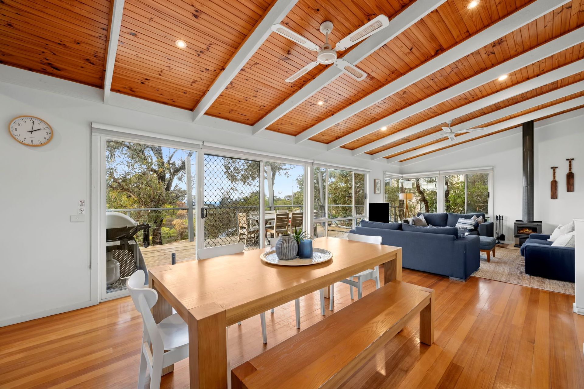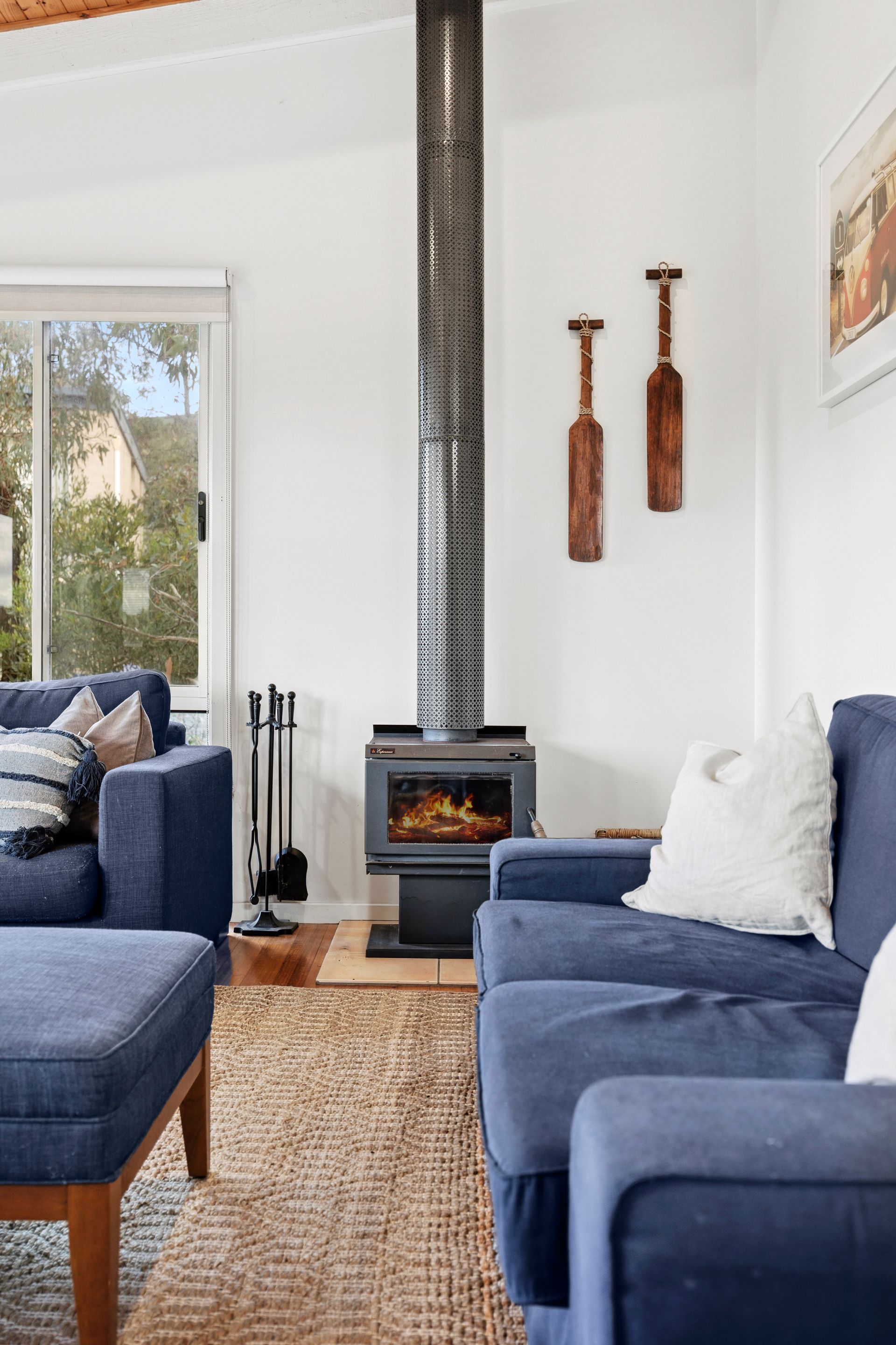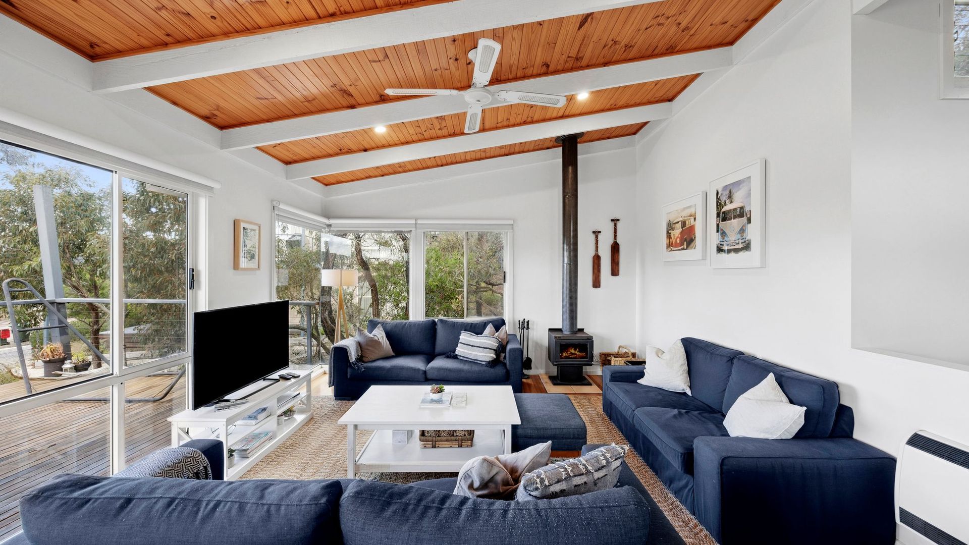 Step inside to discover a spacious, light-filled interior designed for comfort and connection. High ceilings enhance the open feel of the main living area, while the cosy fireplace creates the perfect setting to unwind after a day exploring the Great Ocean Road. The fully equipped kitchen makes preparing meals effortless, whether you’re cooking a relaxed breakfast or a family dinner. With two separate living zones, there’s plenty of space for everyone to spread out, relax, and enjoy their own pace of holiday living.