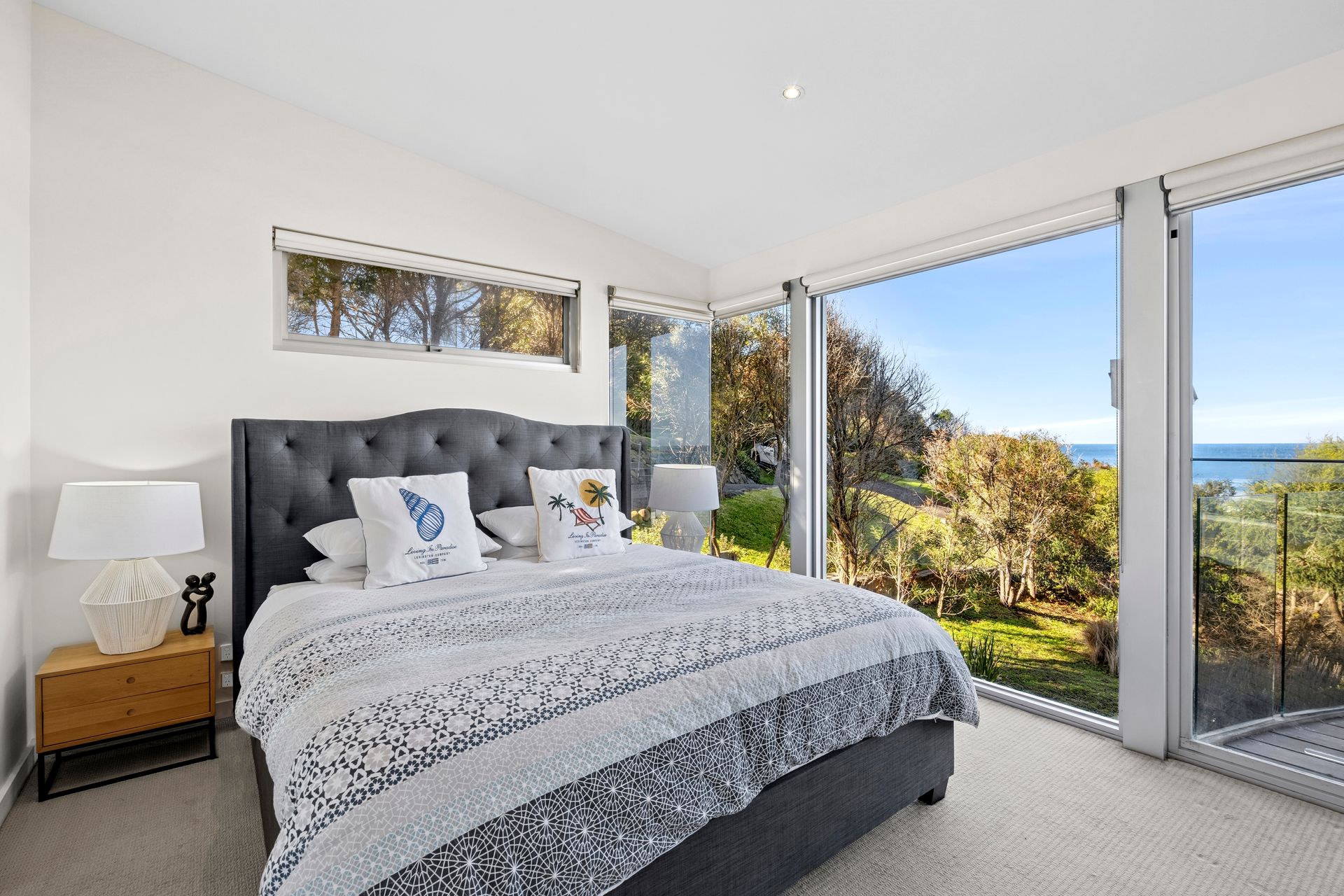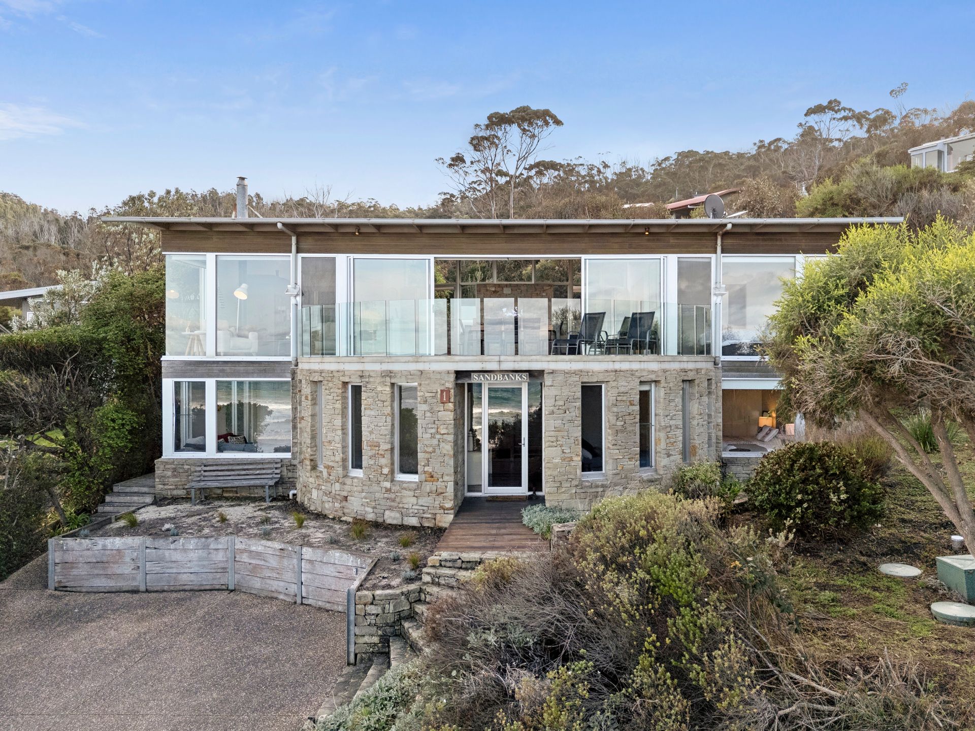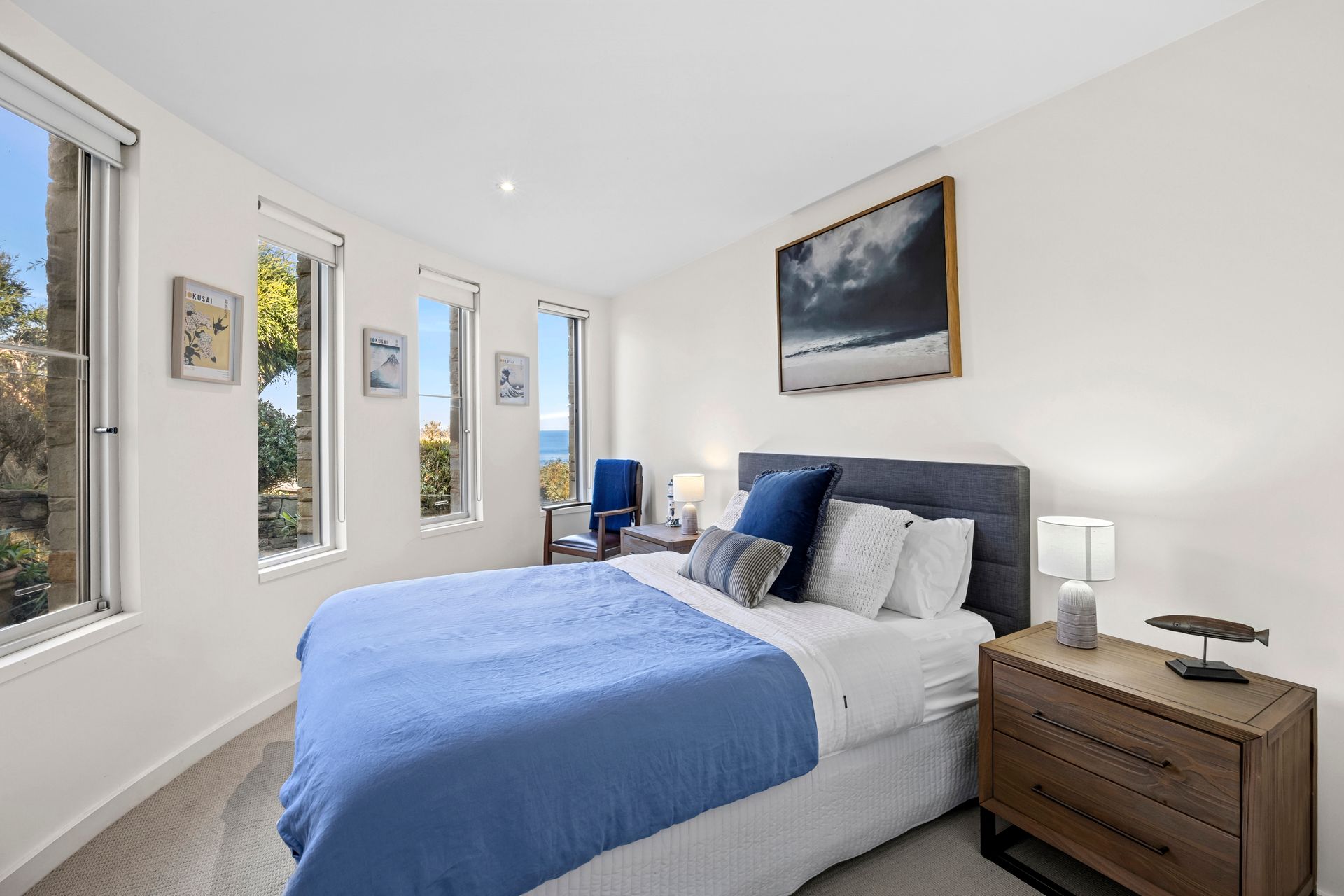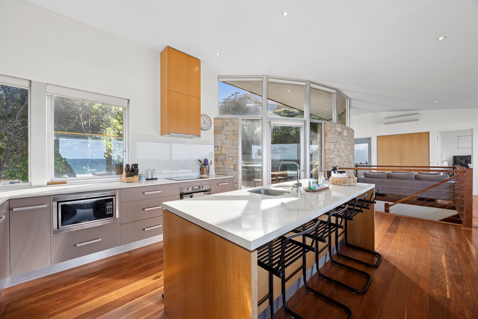 Architecturally designed with a timeless mix of sandstone and timber, Sandbanks offers four beautifully appointed bedrooms and two stylish bathrooms, comfortably accommodating families or groups. Large panoramic windows flood the space with natural light and deliver sweeping views from the beach to the Wye River point—making every moment inside just as breath-taking as those spent outside.