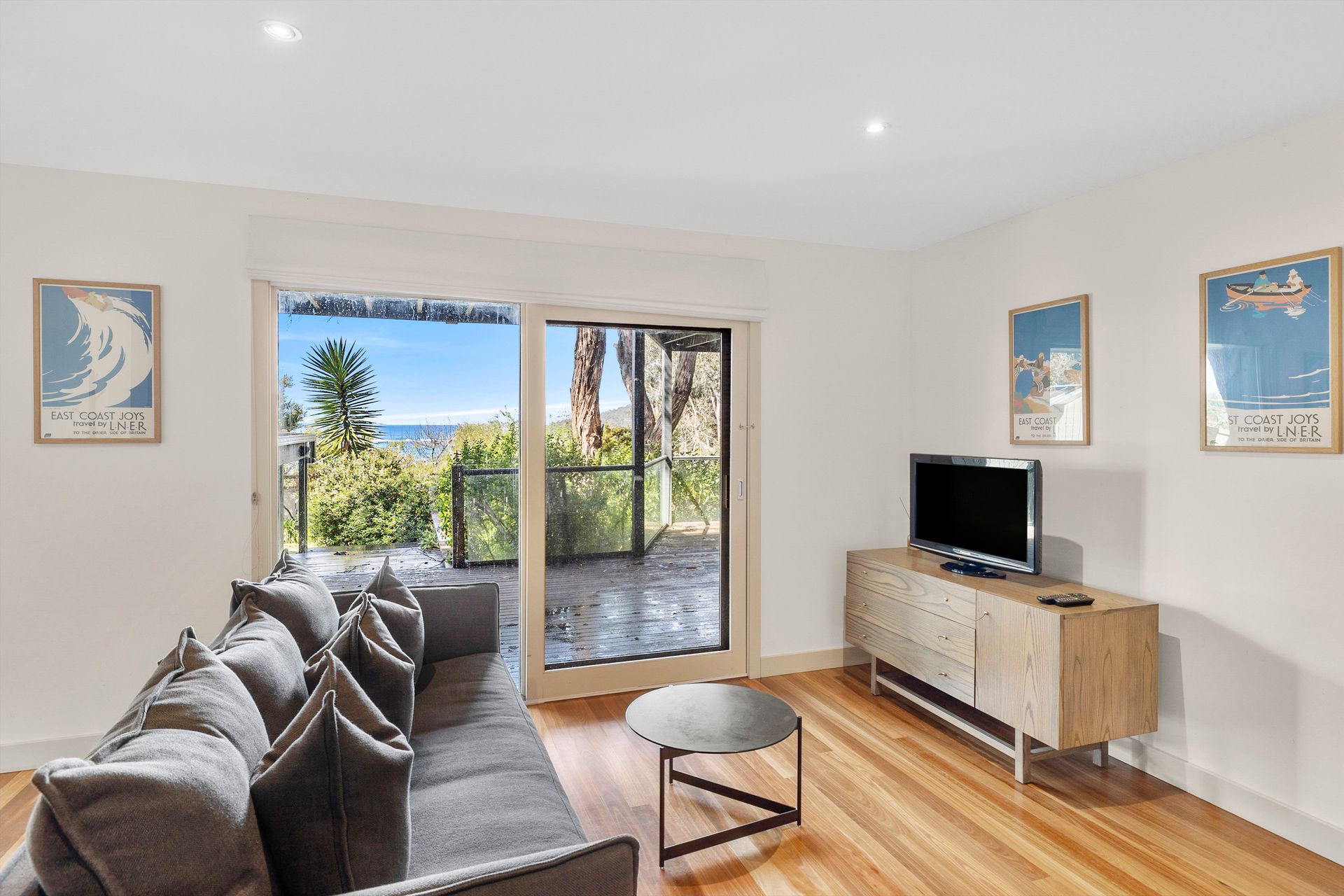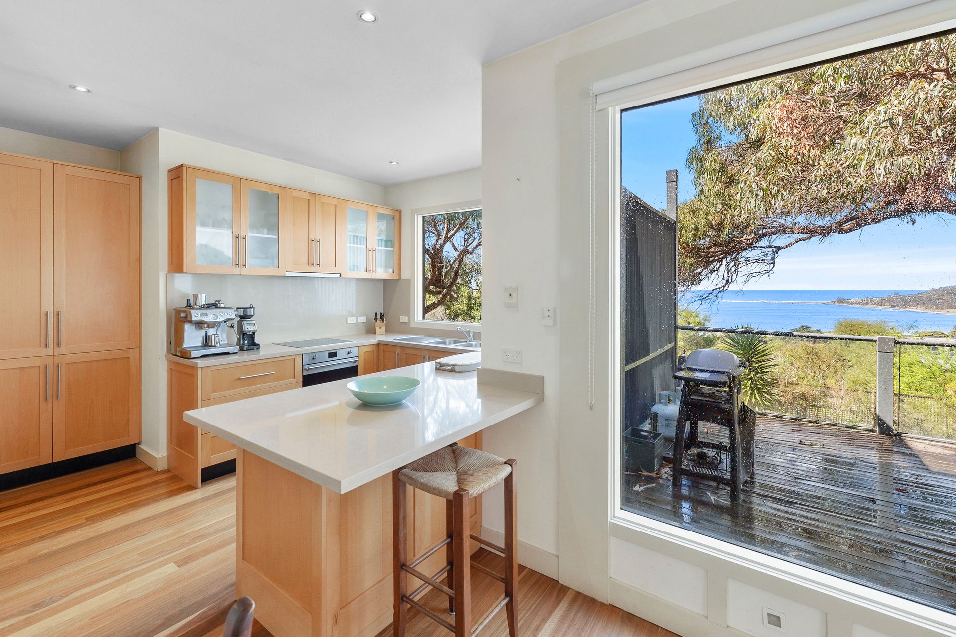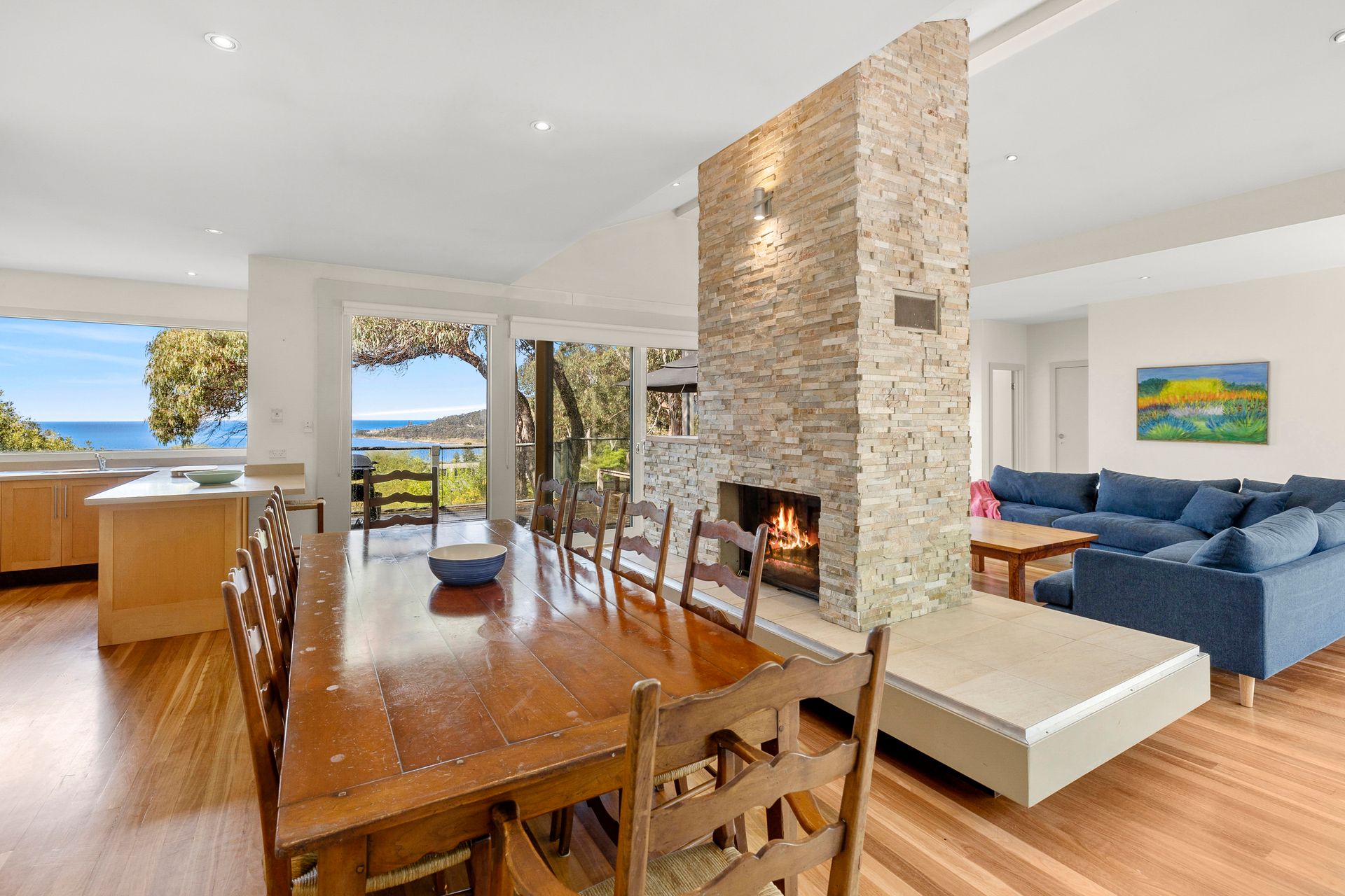 This superbly appointed double storey family beach house boasts panoramic views of Louttit Bay from almost every room in the house. Luxurious features including spotted gum flooring, a double sided Philippe Cheminee open fireplace and stone Italian benchtops are just the beginning.