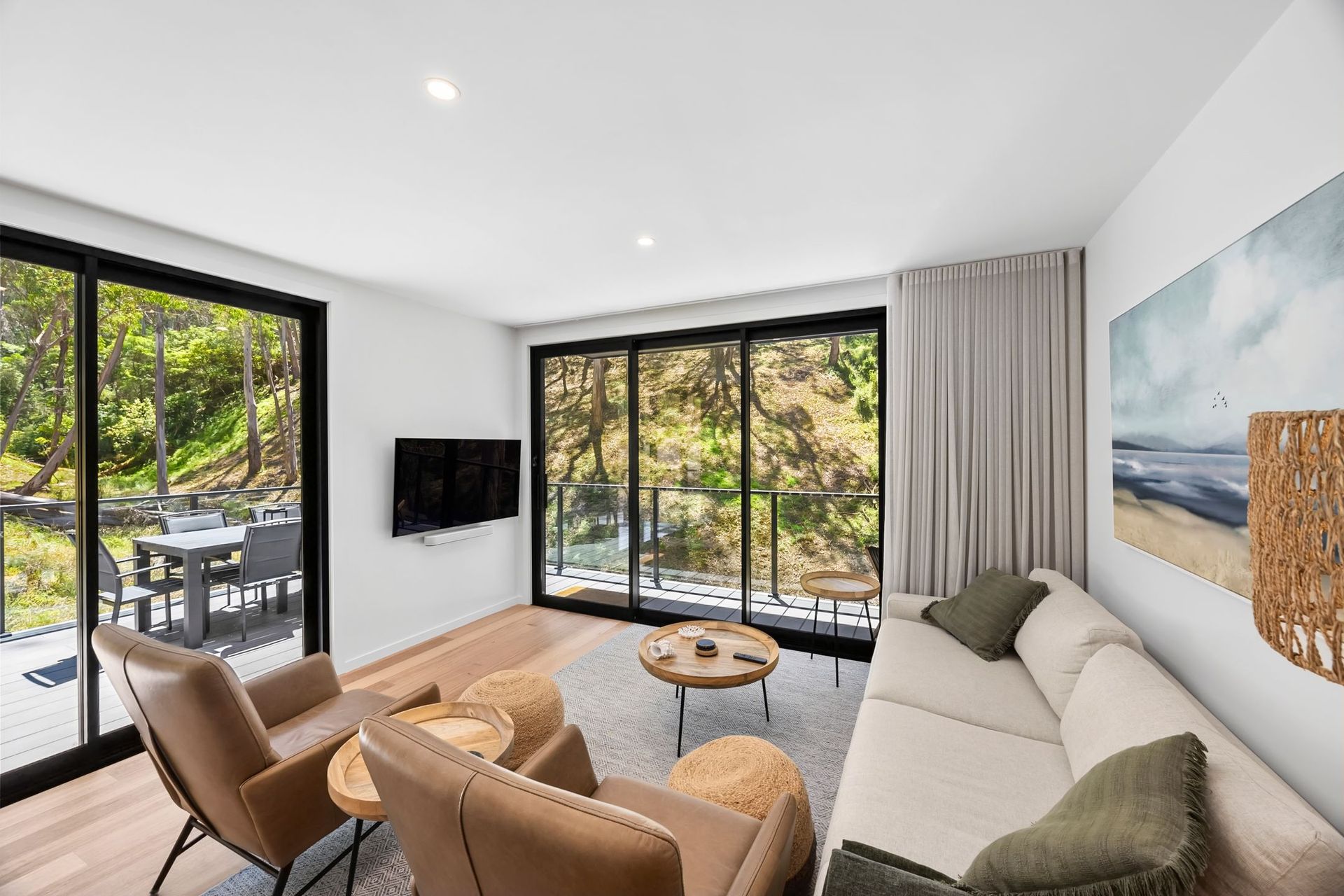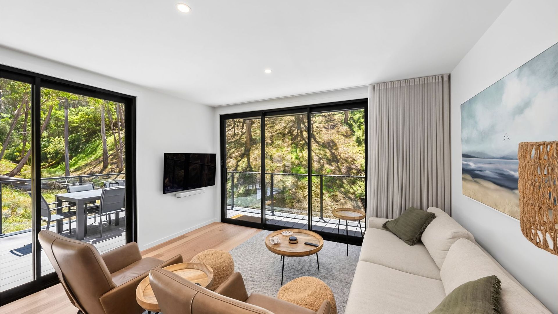 Escape to Sea North, a beautifully appointed, newly built coastal haven nestled in peaceful surrounds. Light-filled and thoughtfully designed, this tranquil bushland retreat offers year-round comfort for the perfect Great Ocean Road getaway.
