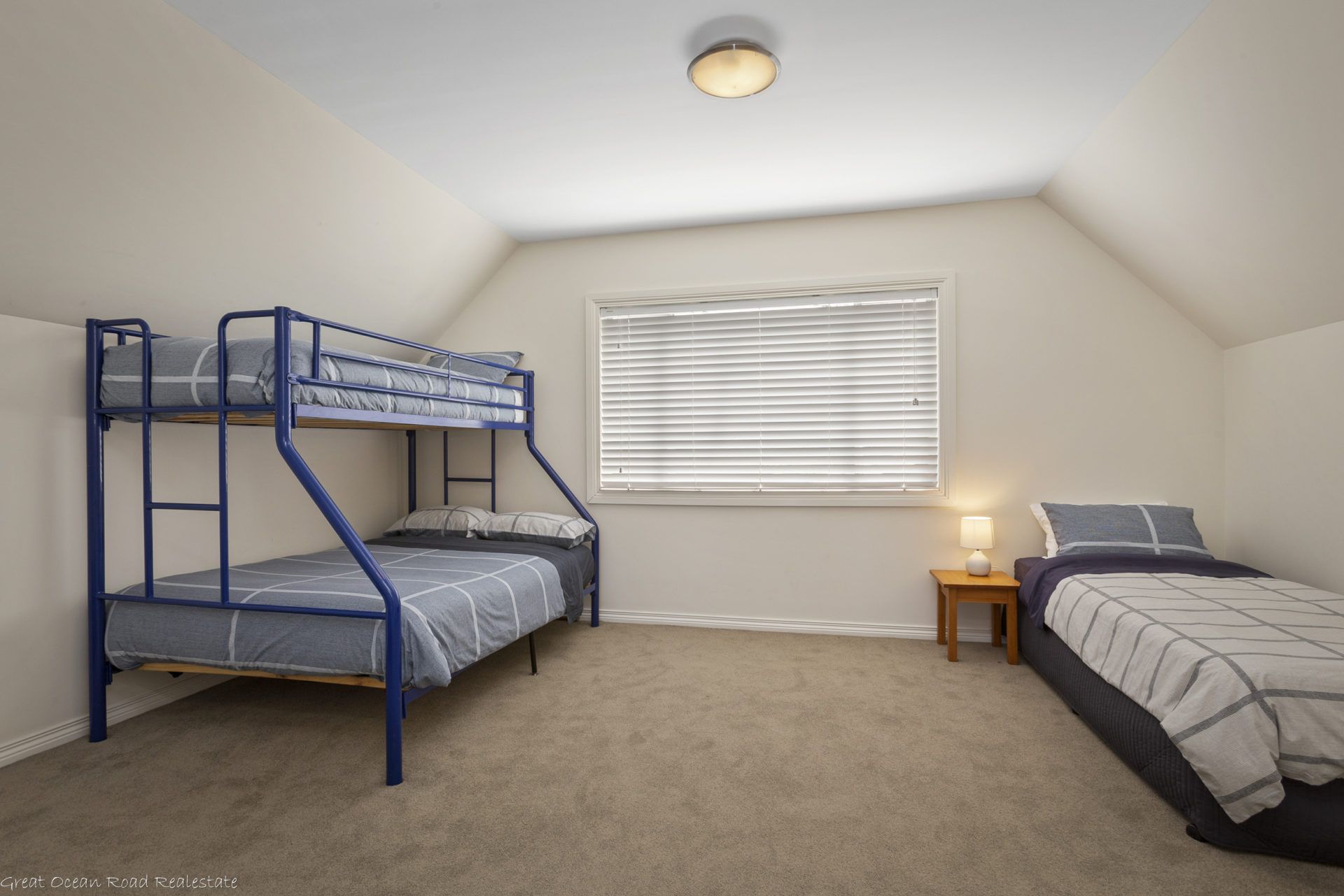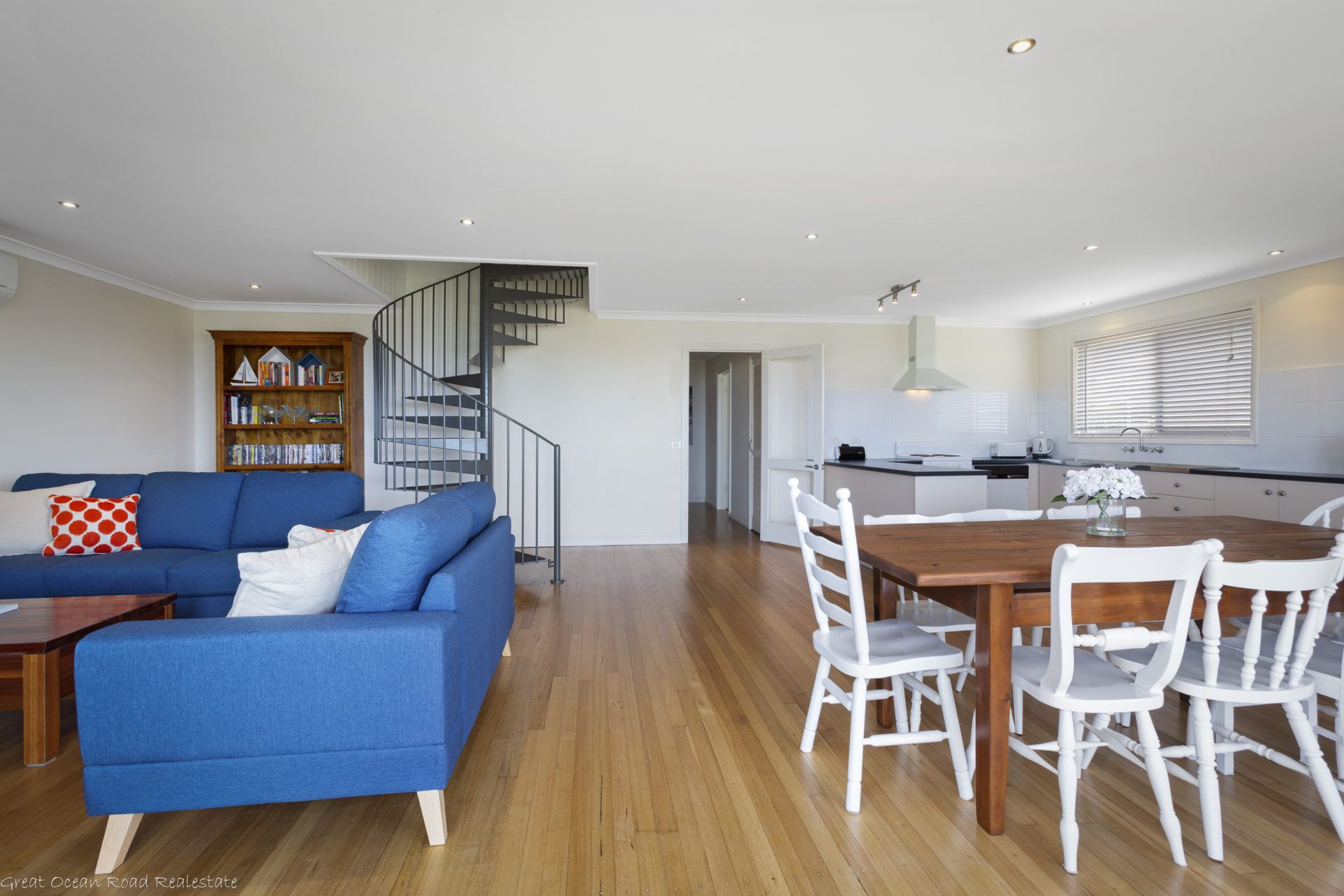 Situated only 800 metres from Skenes Creek beach with direct ocean views, this 3 bedroom, apex structured, eclectic beach house is a holiday dream! Featuring timber floor boards throughout the living spaces & carpeted bedrooms.