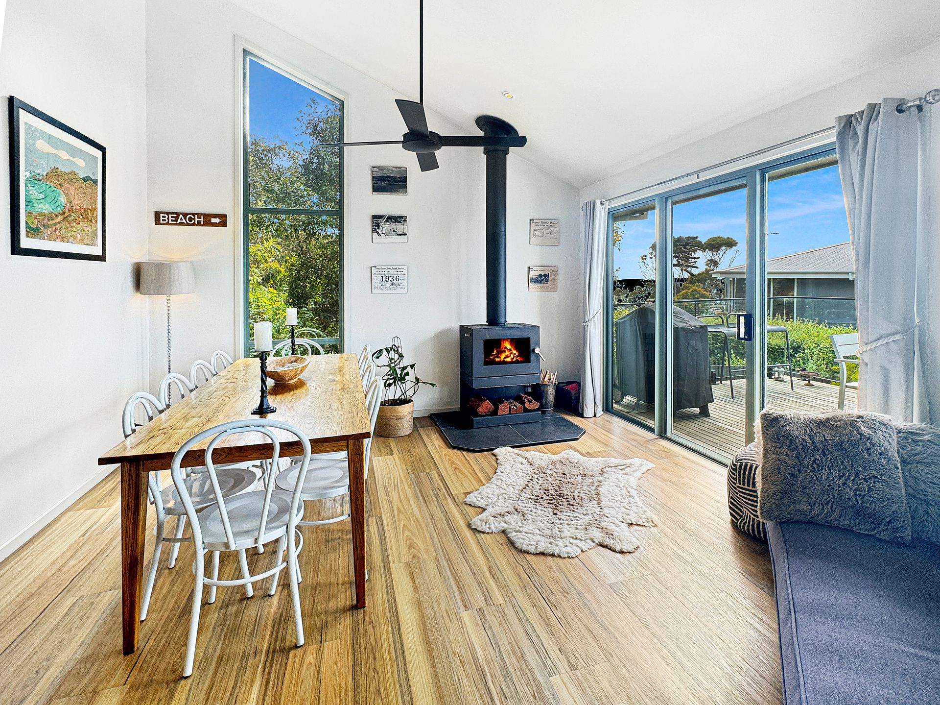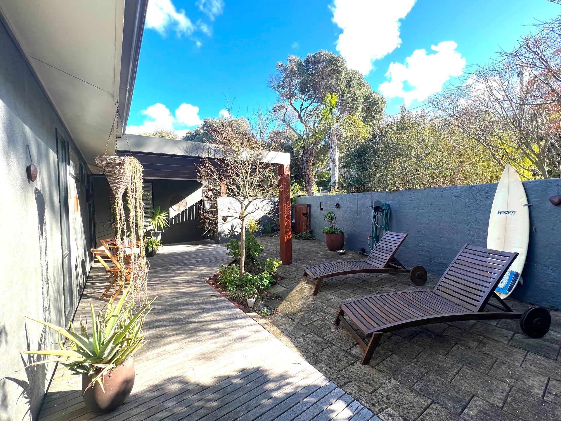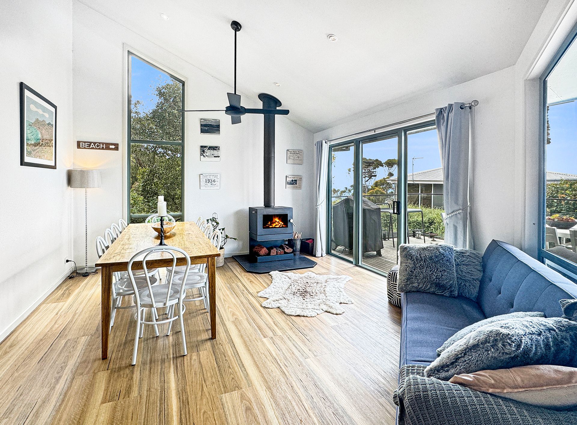 Perfect for both summer escapes and cosy winter retreats, the home includes a wood fire ideal for warming up on chilly nights. During the warmer months, enjoy outdoor living with two separate alfresco areas—ideal for entertaining or simply soaking up the coastal atmosphere.