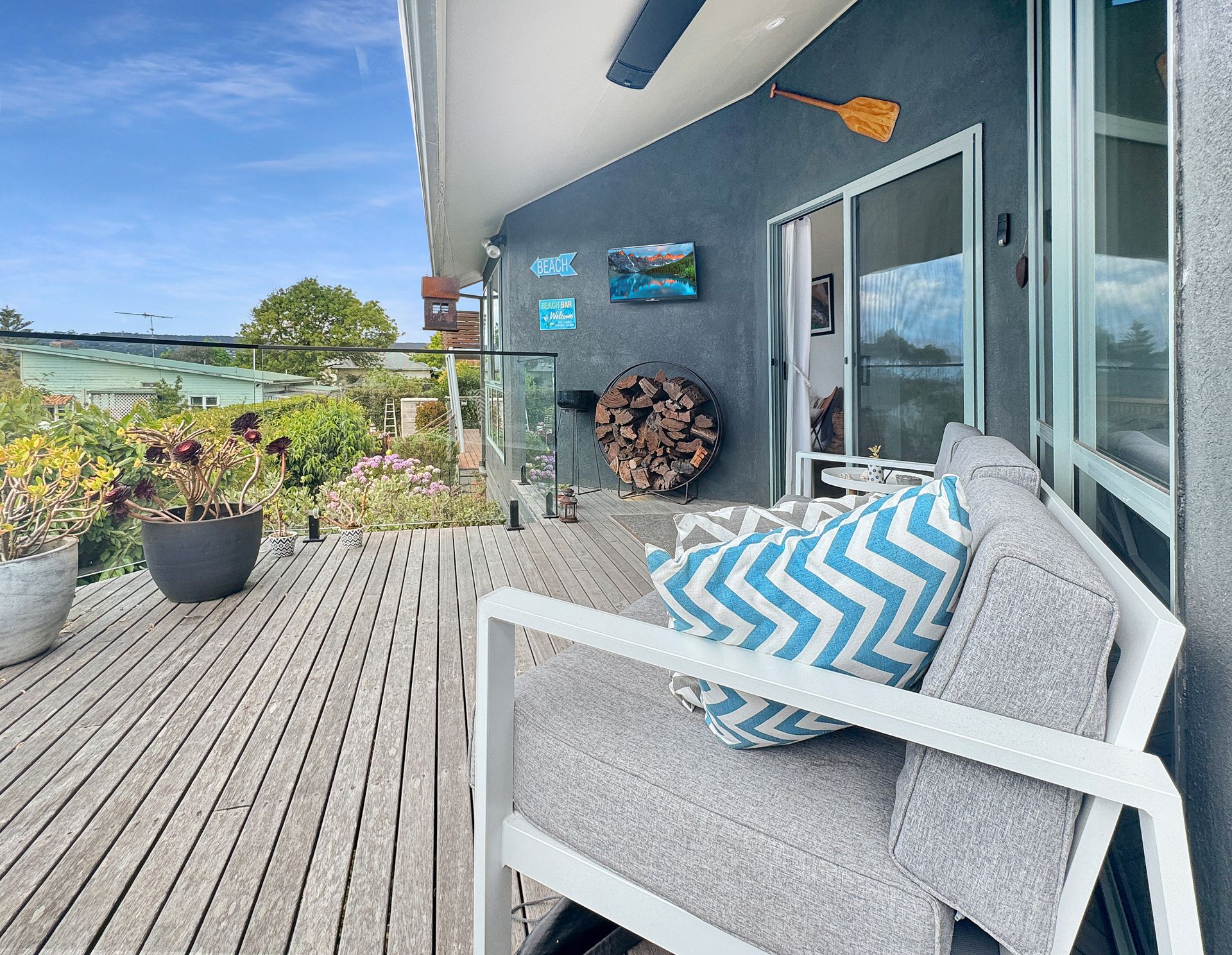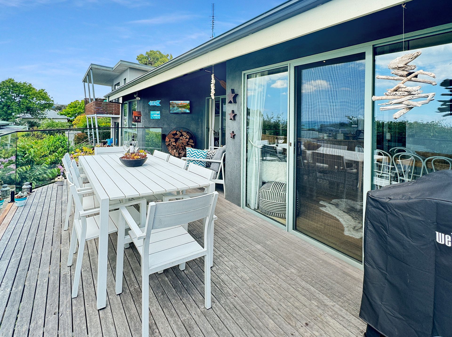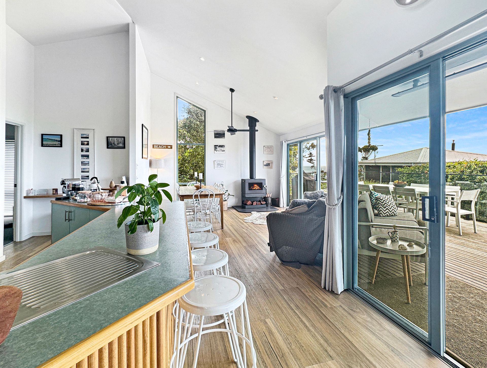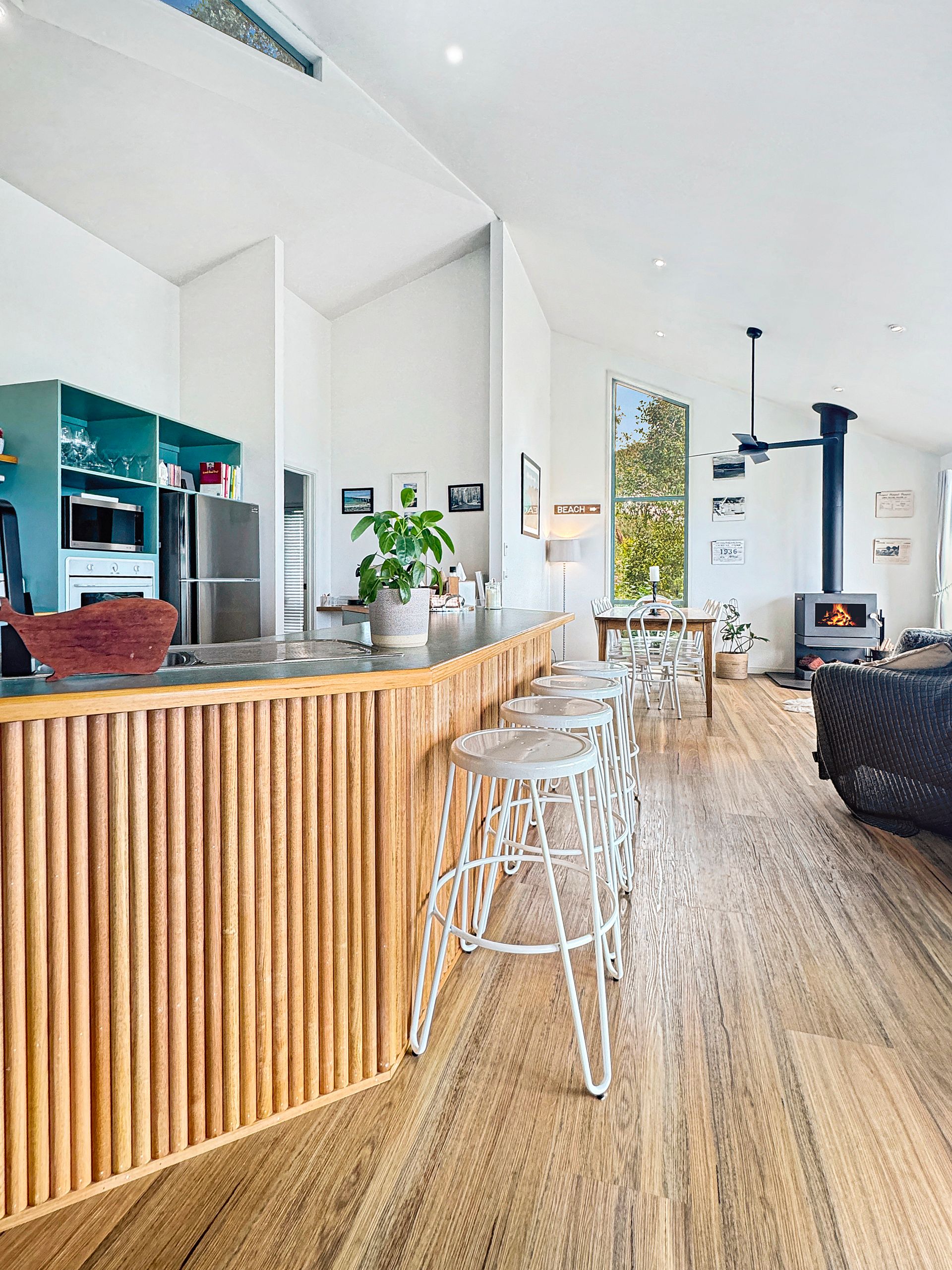 Perfect for both summer escapes and cosy winter retreats, the home includes a wood fire ideal for warming up on chilly nights. During the warmer months, enjoy outdoor living with two separate alfresco areas—ideal for entertaining or simply soaking up the coastal atmosphere.