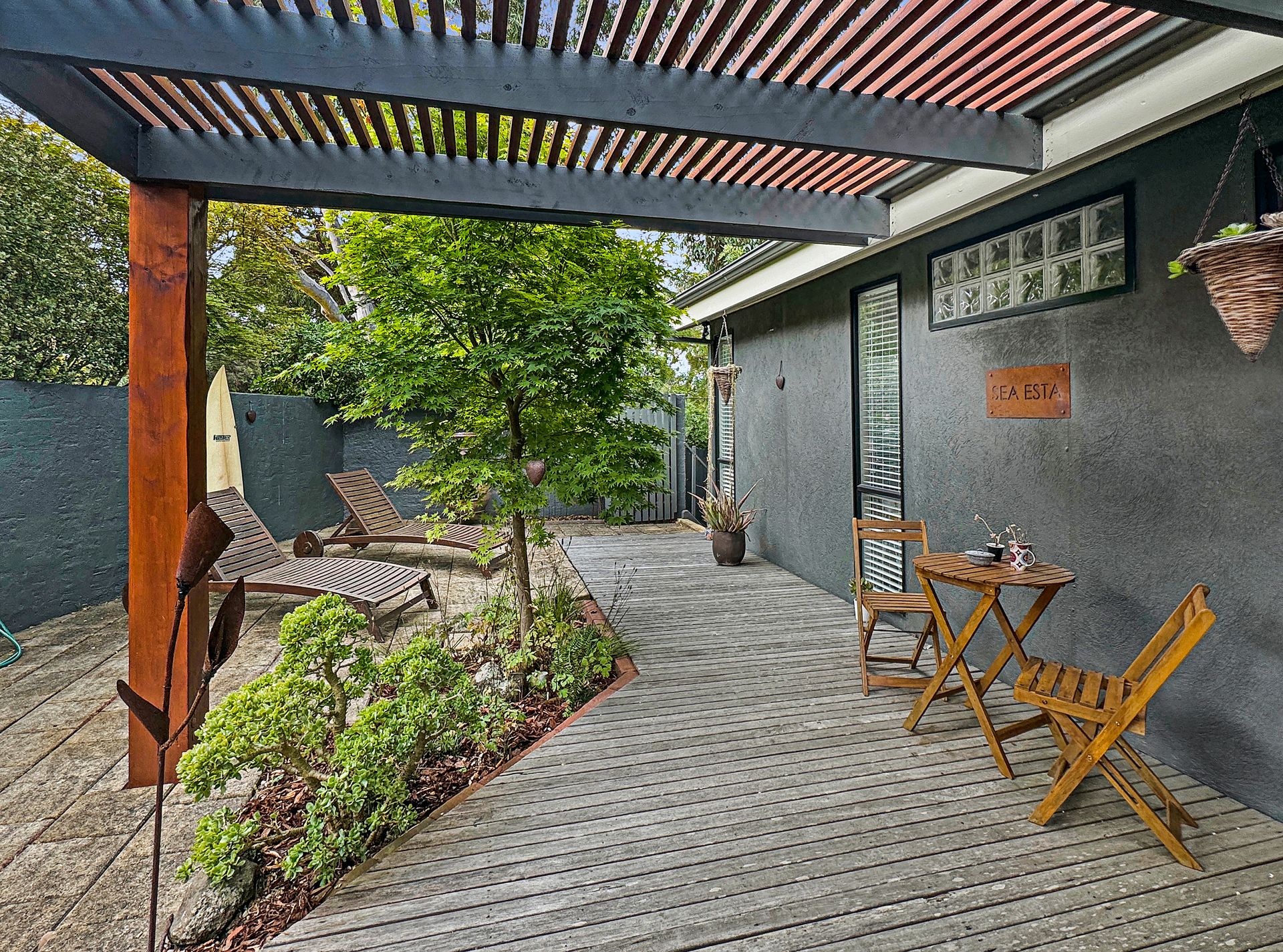 Sea Esta is a stylish and modern beach retreat, thoughtfully designed to offer year-round comfort and relaxation. Featuring three spacious bedrooms and two contemporary bathrooms, this beautifully appointed home boasts a large, light-filled open-plan living and dining area with soaring ceilings that create a sense of space and tranquility.