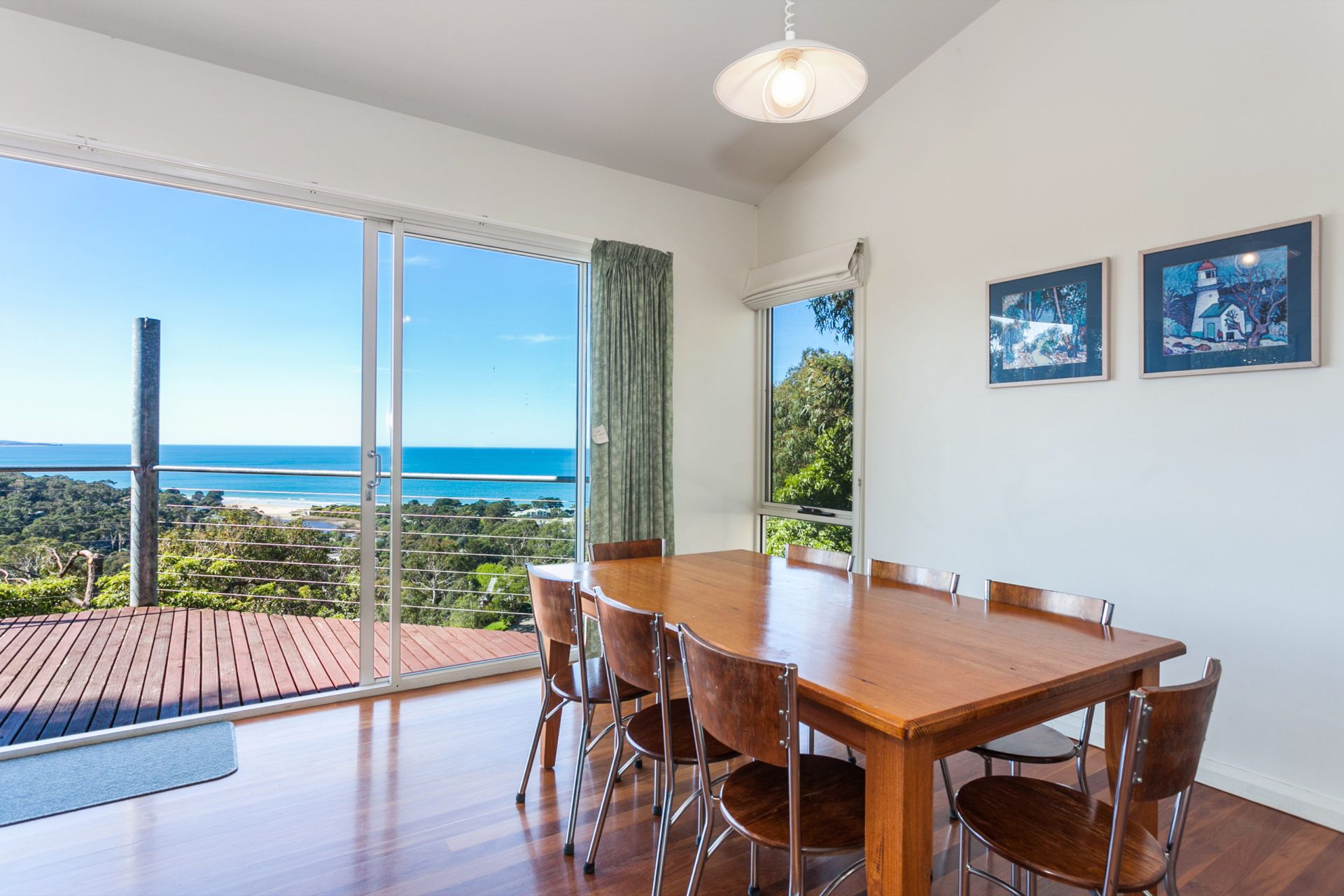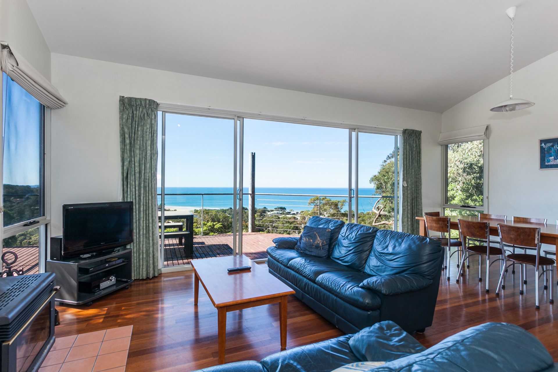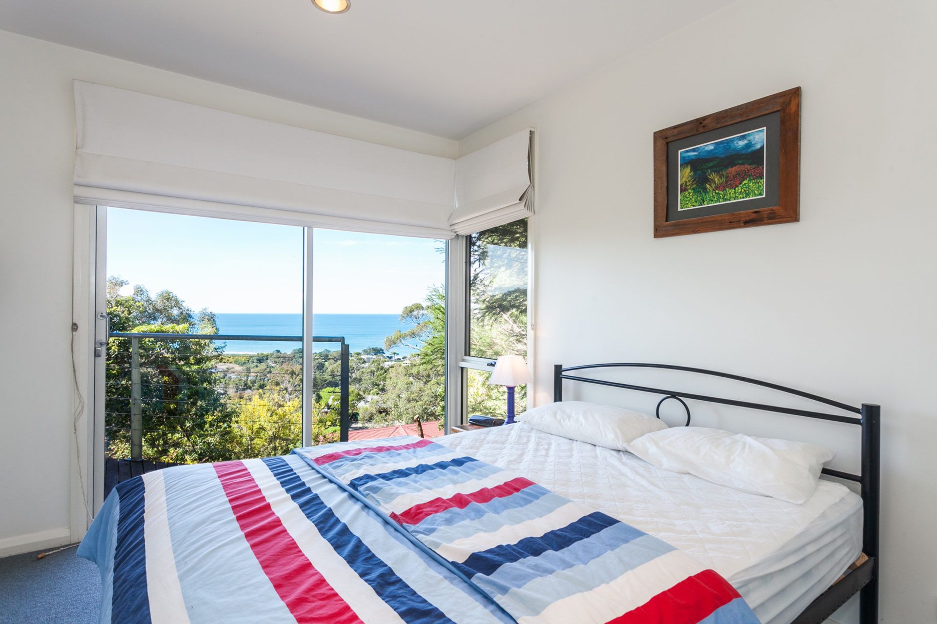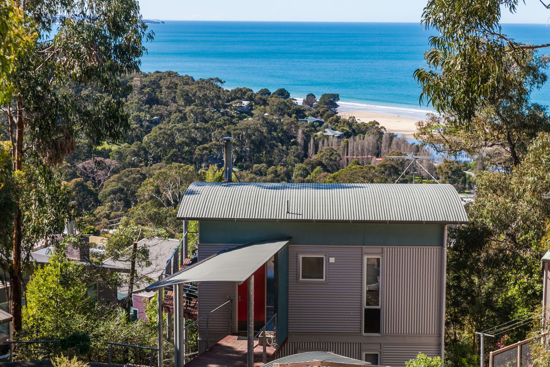 Modern double storey three bedroom property perched in the hills of Toorak Terrace, featuring open kitchen/living area with brilliant views of Loutitt Bay & Lorne township. All this is the scene for a fantastic relaxing holiday. Lounge room features flat screen TV.