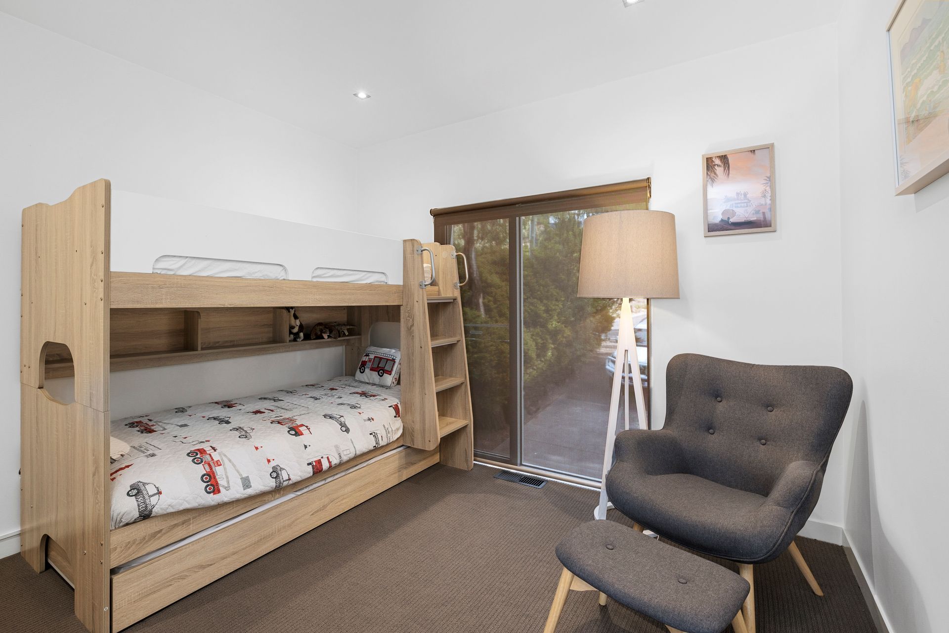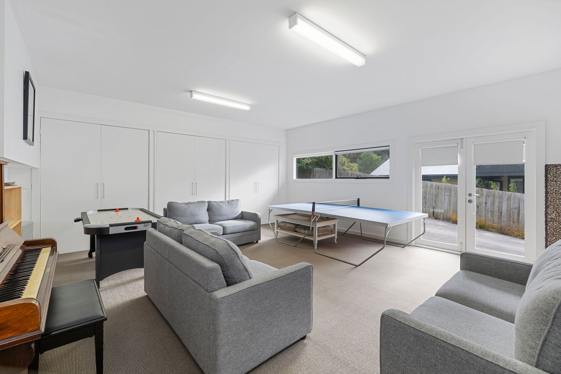 Central to the home and somewhat of a feature itself is a spacious stairwell extending both upwards to the master bedroom and bunk room as well as below to two further spacious king bedrooms, main bathroom and also, second living / rumpus. Set up for a variety of enjoyable activities including table tennis and air hockey the space also accommodates an area to pop on a DVD or simply peruse the bookshelf.