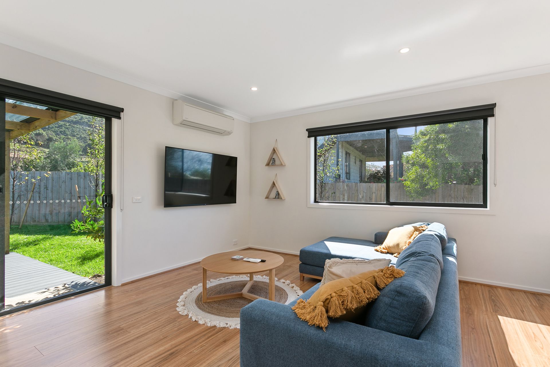 This modern & spacious family home is set back in the quieter area of Apollo Bay. Newly built, this property will be you new favorite family holiday destination. The garage has been converted into a games room, complete with ping pong table and couch. Free WiFi, large TV and fantastic cooking facilities will make you feel right at home. Enjoy your days in the fenced backyard area or wander down to the beach or main shopping strip of Apollo Bay. This property is also pet friendly outside only.