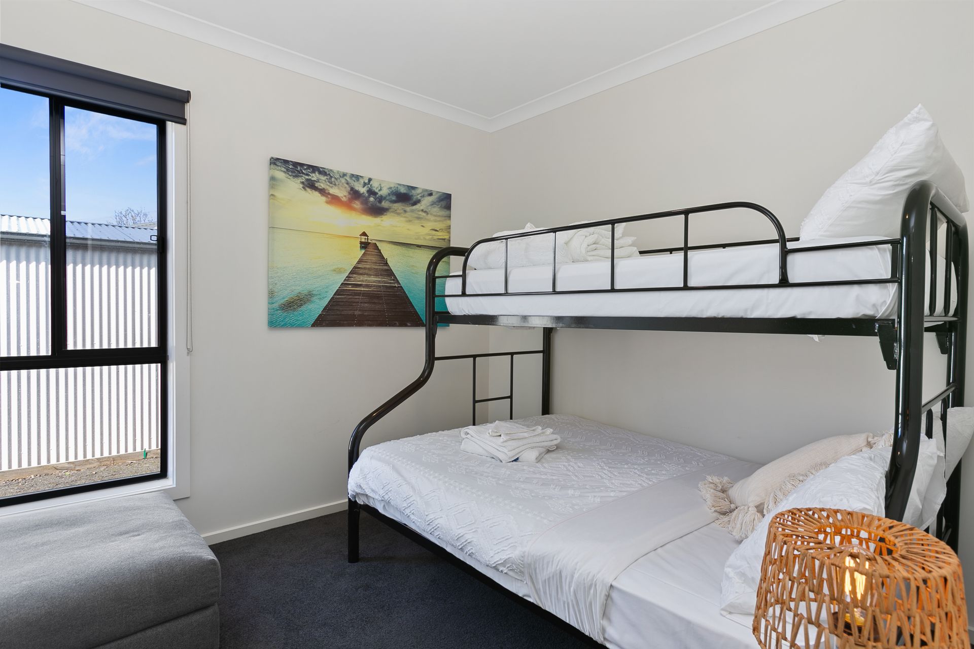 -Bedroom 3: 1 x Tri-bunk with bedside table and lamp