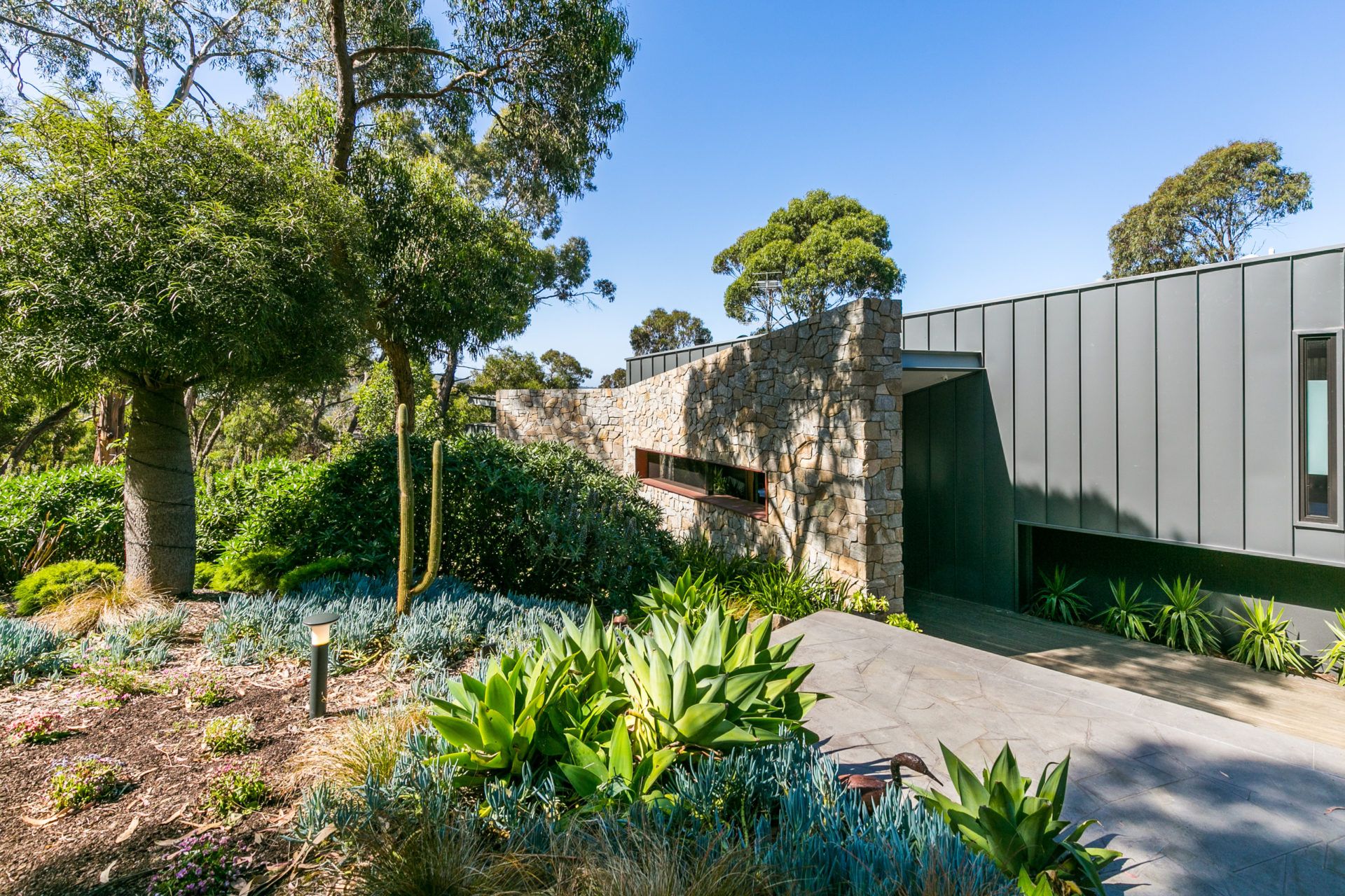 Bluestone steps lead to the front entrance and make a grand first impression. This continues inside: the sumptuous, open plan entertaining area is much larger than one would anticipate. The tiled expanse with underfloor heating is punctuated by a Chazelles double-sided fireplace with stone hearth. On one side is the living area with custom built teak joinery and an inviting island of inlaid carpet; on the other a generous dining area and beautiful entertainers kitchen with Stone Italiana bench tops, European appliances and large butlers pantry.