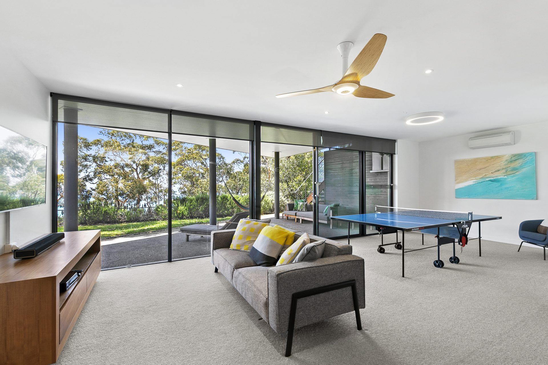 Back inside, a solid teak staircase leads to the upper level with its master bedroom with ensuite and built-in robe, two more generously sized bedrooms both featuring teak joinery, the main bathroom and the laundry. The lower level, which opens to the lawn and fenced gardens, offers a haven for guests with a spacious second living area, 4th and 5th bedroom, main bathroom and separate toilet. There is considerable flexibility for how this level is used with the second living serving as rumpus room, TV, lounge, table tennis and office area (just in case someone actually wants/needs to do some work). The bedrooms also feature queen size tri-bunks allowing for equal function & comfort for couples or children.