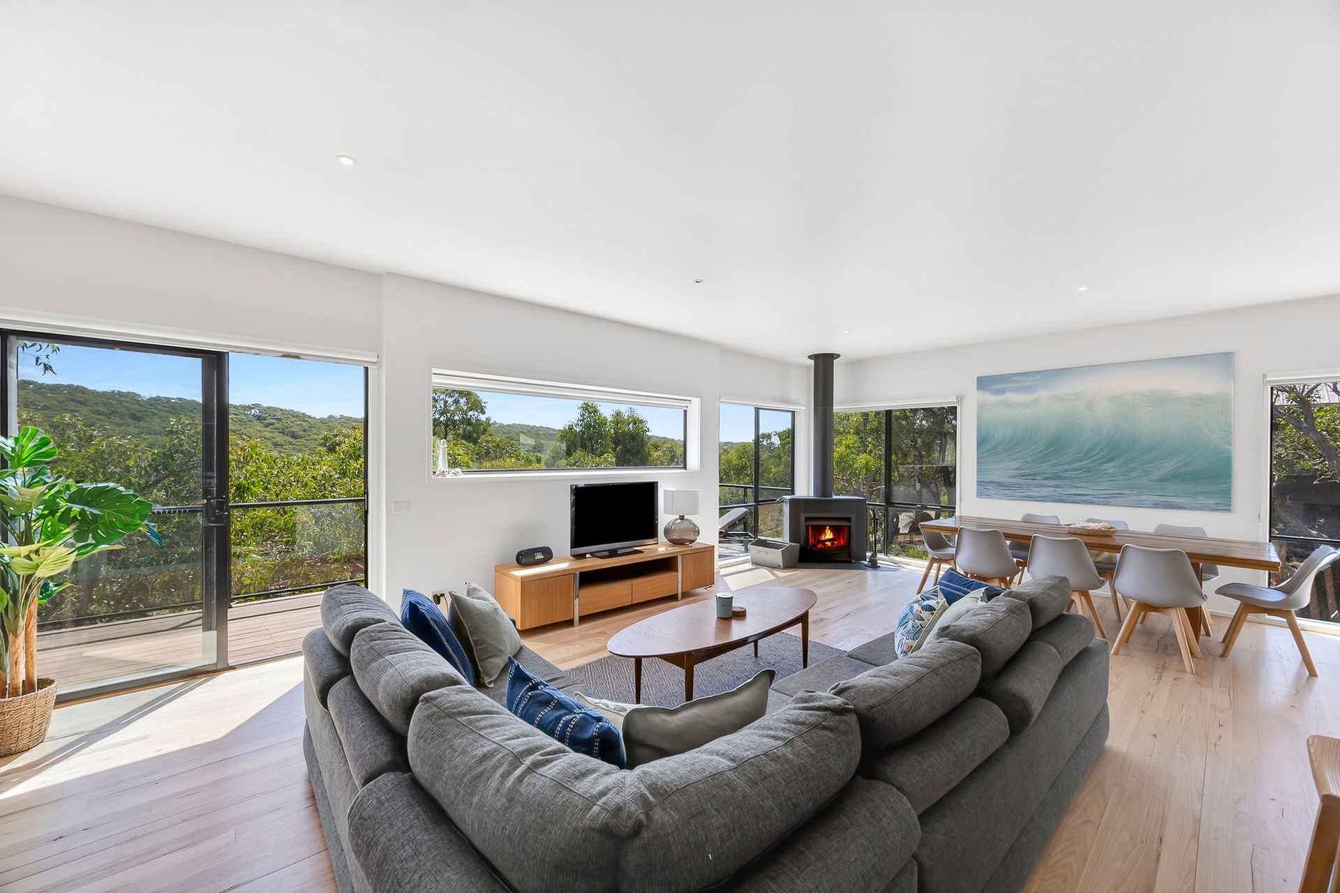 Nestled among tranquil bushland along the iconic Great Ocean Road, this spacious coastal retreat offers the perfect blend of privacy, comfort, and relaxed seaside living. Sleeping up to eight guests, it’s an ideal escape for families or groups seeking fresh ocean air, native wildlife, and easy access to the beach.