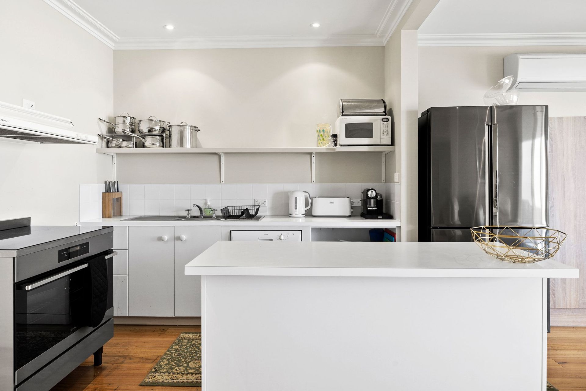 Inside, you’ll find a spacious living room with a flat-screen TV and Wi-Fi for your entertainment. While the sea breeze makes the place naturally cool, split-system air-conditioning is still installed.