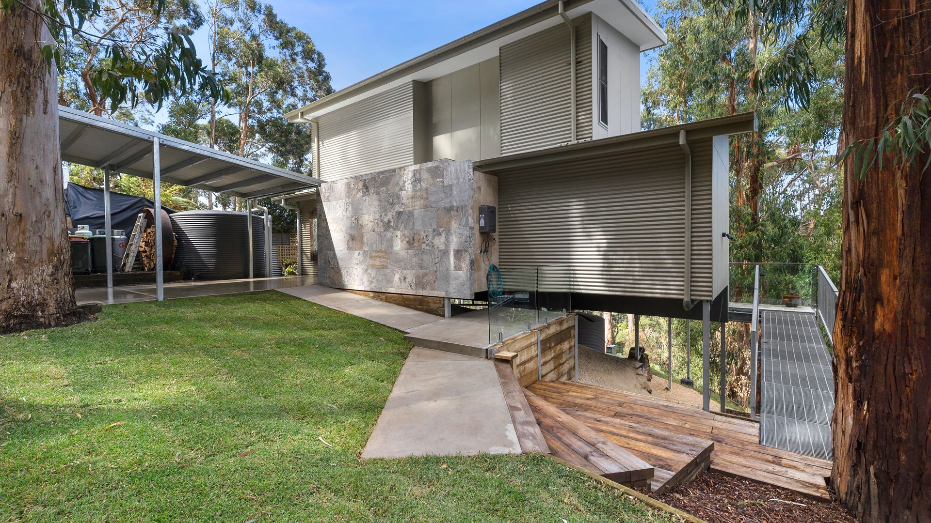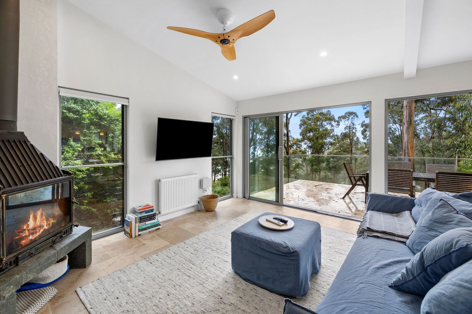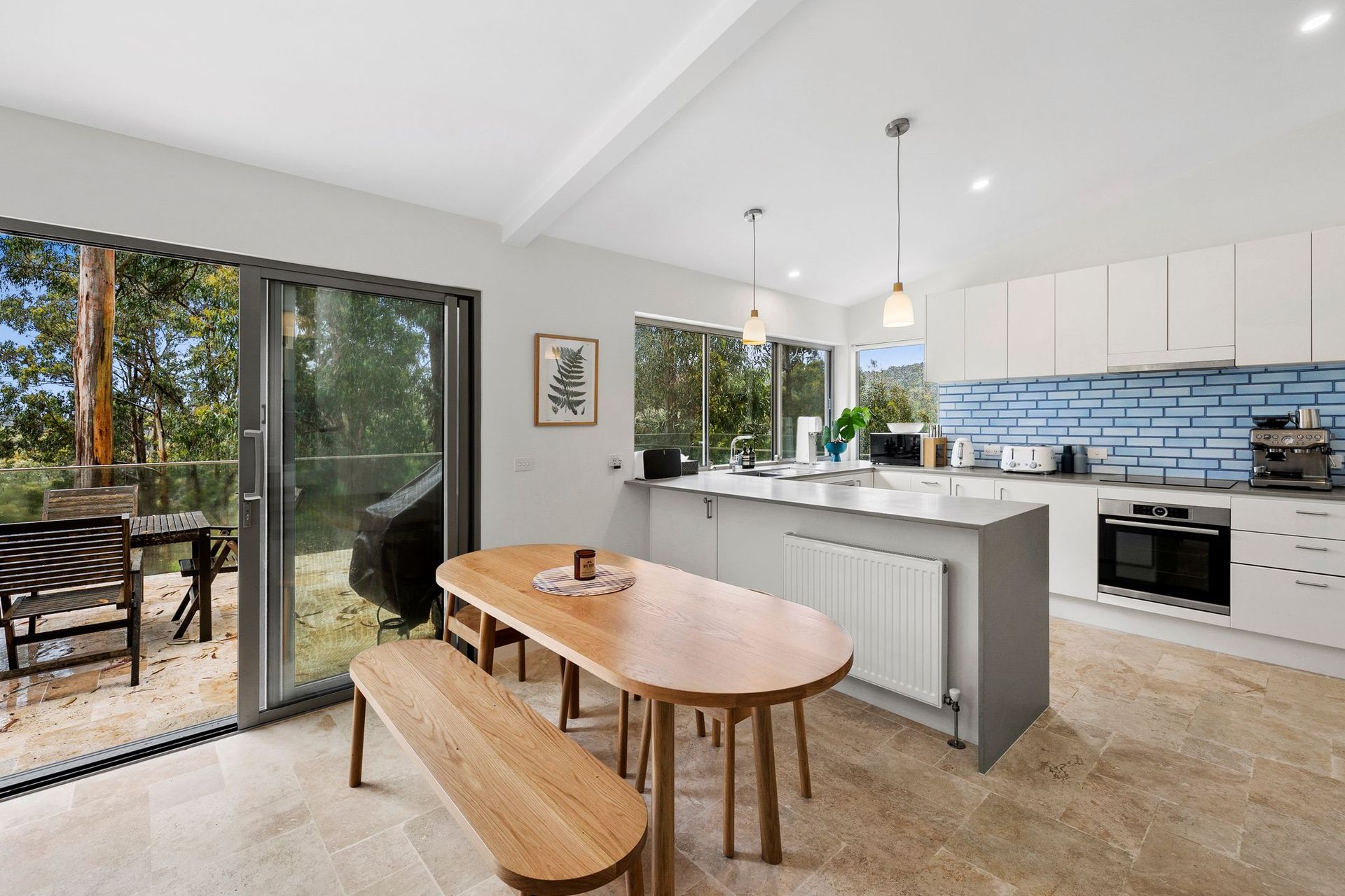 Set in a private and stunning location surrounded by iconic Otways forest is Sky High House. Although only built in 2021, this three bedroom, 2 bathroom home feels like it has been there for a lifetime, easily melding into the natural landscape.