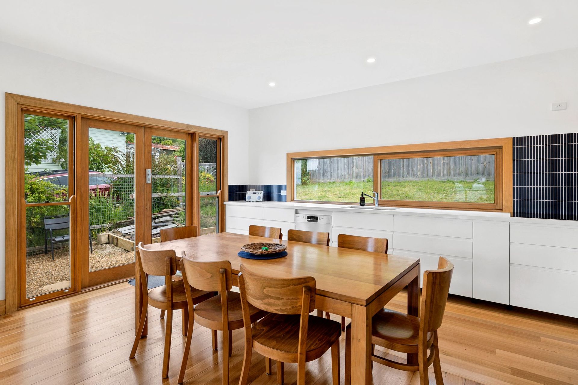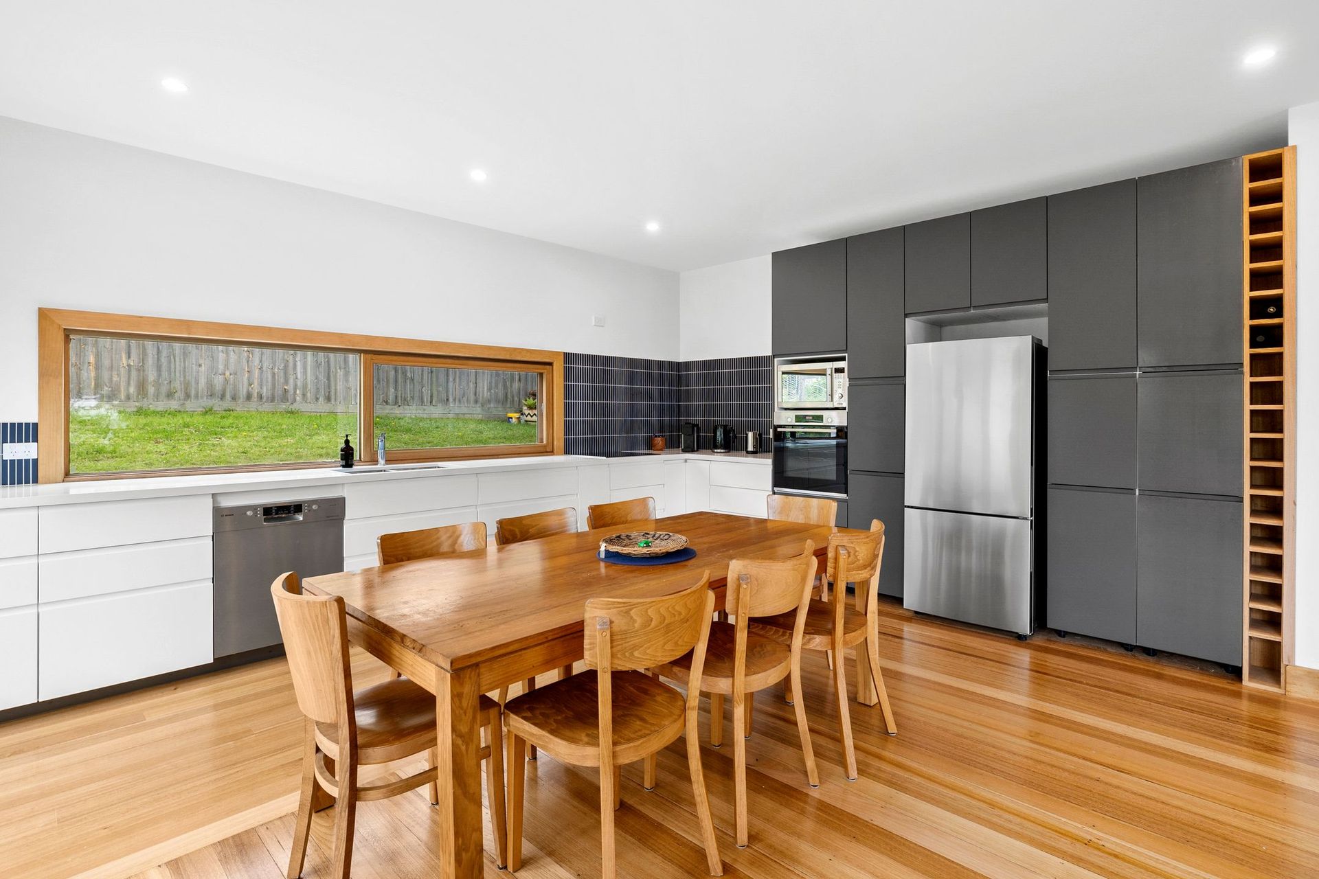 Set across a single level, the home features a delightful open-plan living area capturing lovely ocean views. The generous galley kitchen spans the rear wall overlooking dining, lounge and deck. Polished timber floors and modern furnishings create a crisp unpretentious feel.