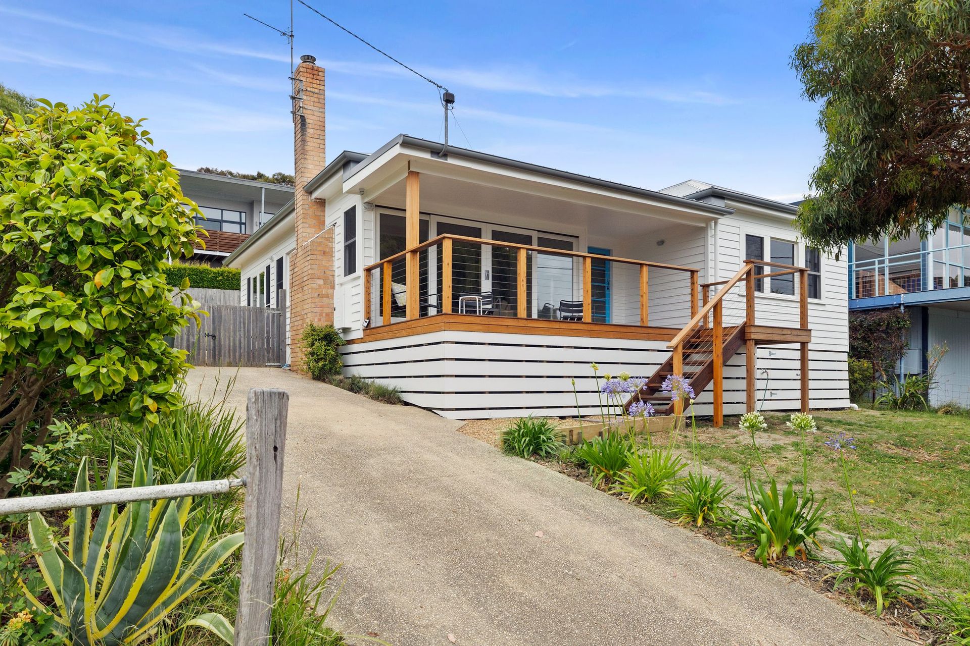 Recently renovated and restored to recapture its former glory, the home is every bit modern comfort as it is classic beach weatherboard.