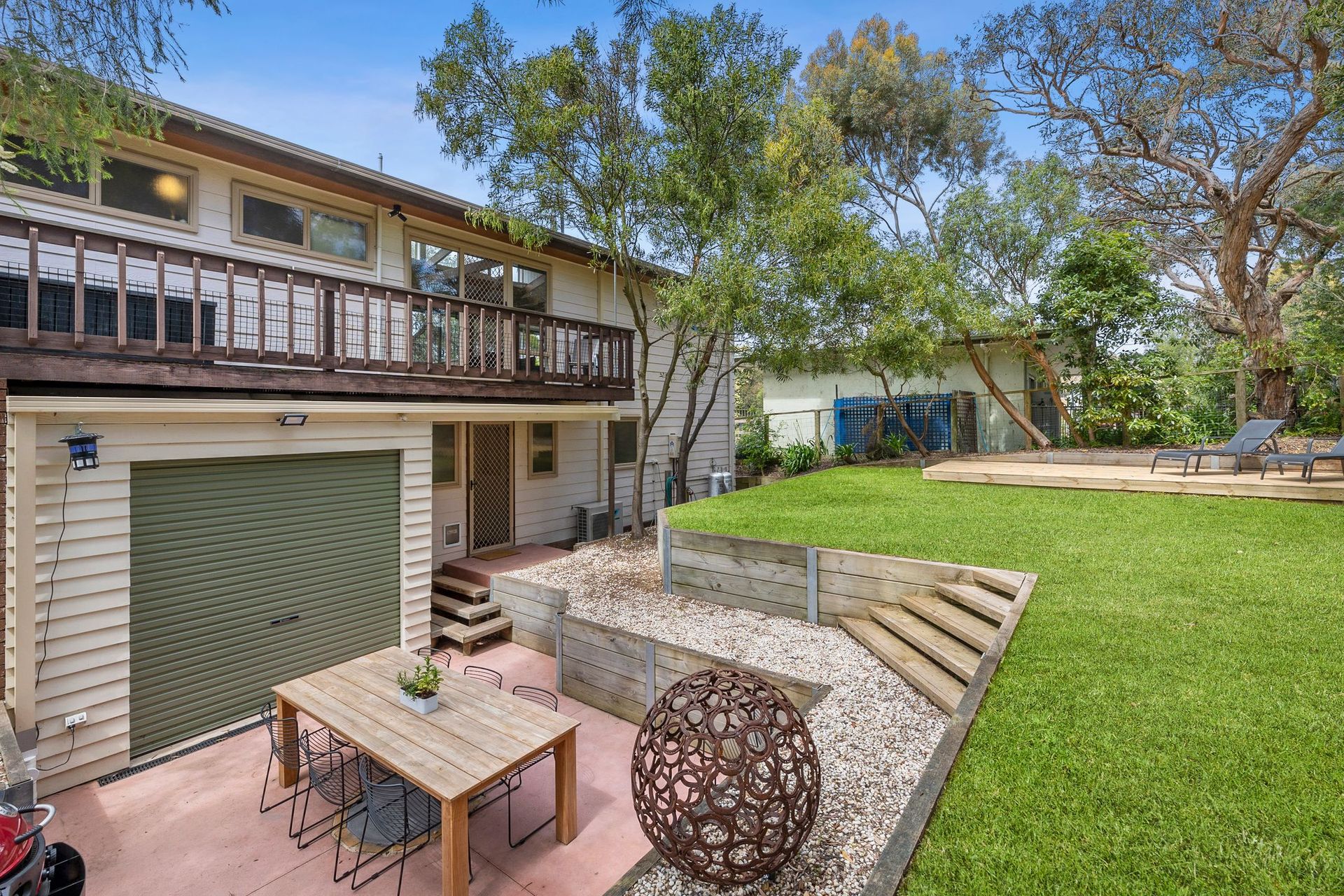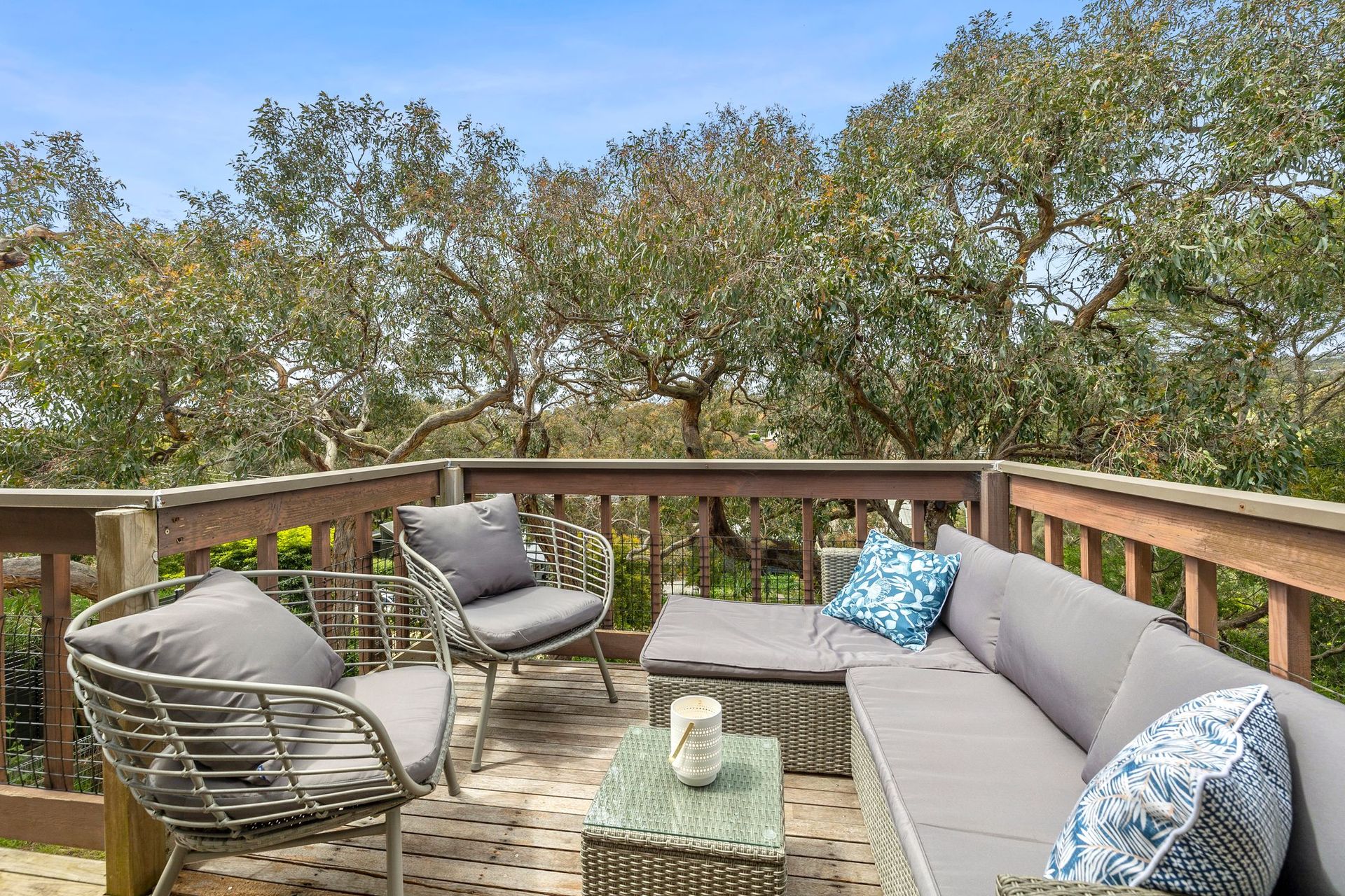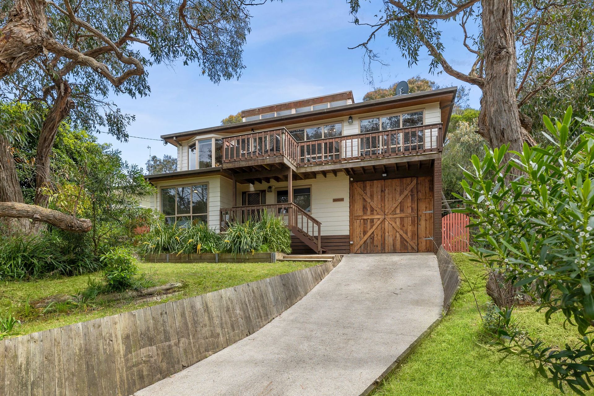 This two-storey paradise is located in the tranquil area of Lewis Court in Anglesea, which is known for its sprawling white beaches and forests. It is perfectly nestled among the treetops, home to many local birds. It has an elegant living room, two balconies, a full kitchen, Wi-Fi, wall heaters, air-conditioning, three spacious bedrooms with one having an ensuite, a landscaped lawn with a patio, and more. The interior design is also a sight to see and experience!