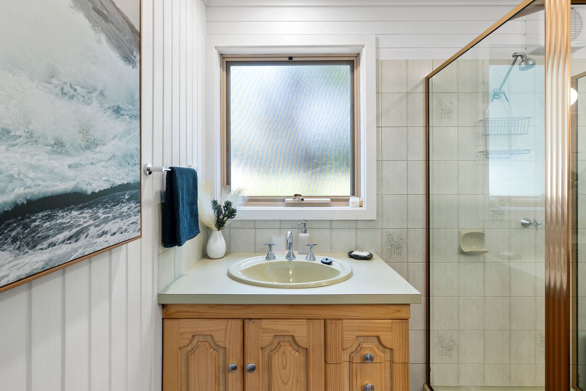 The main Bathroom (Downstairs) also has shower and toilet amenities.