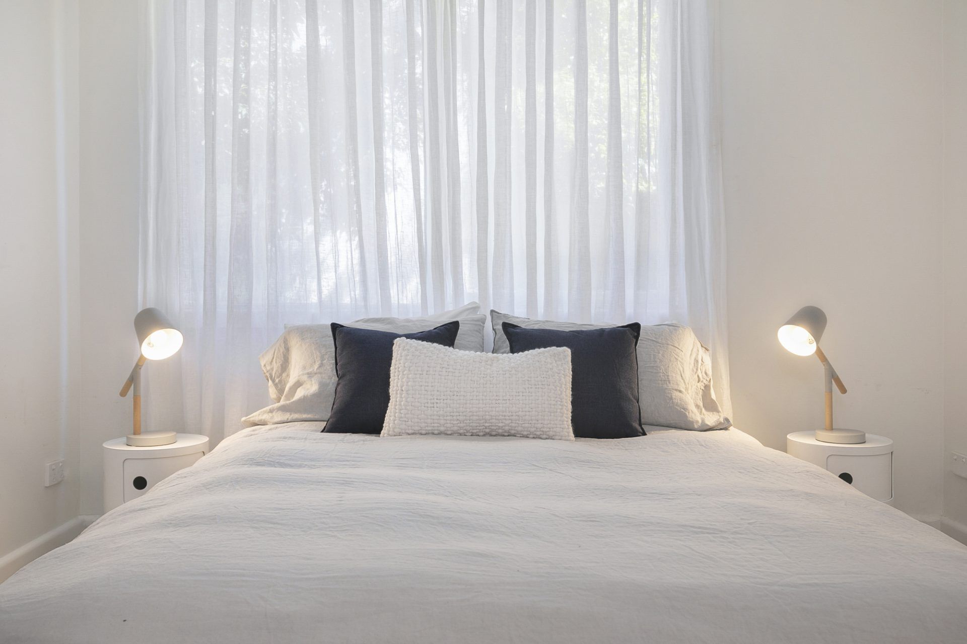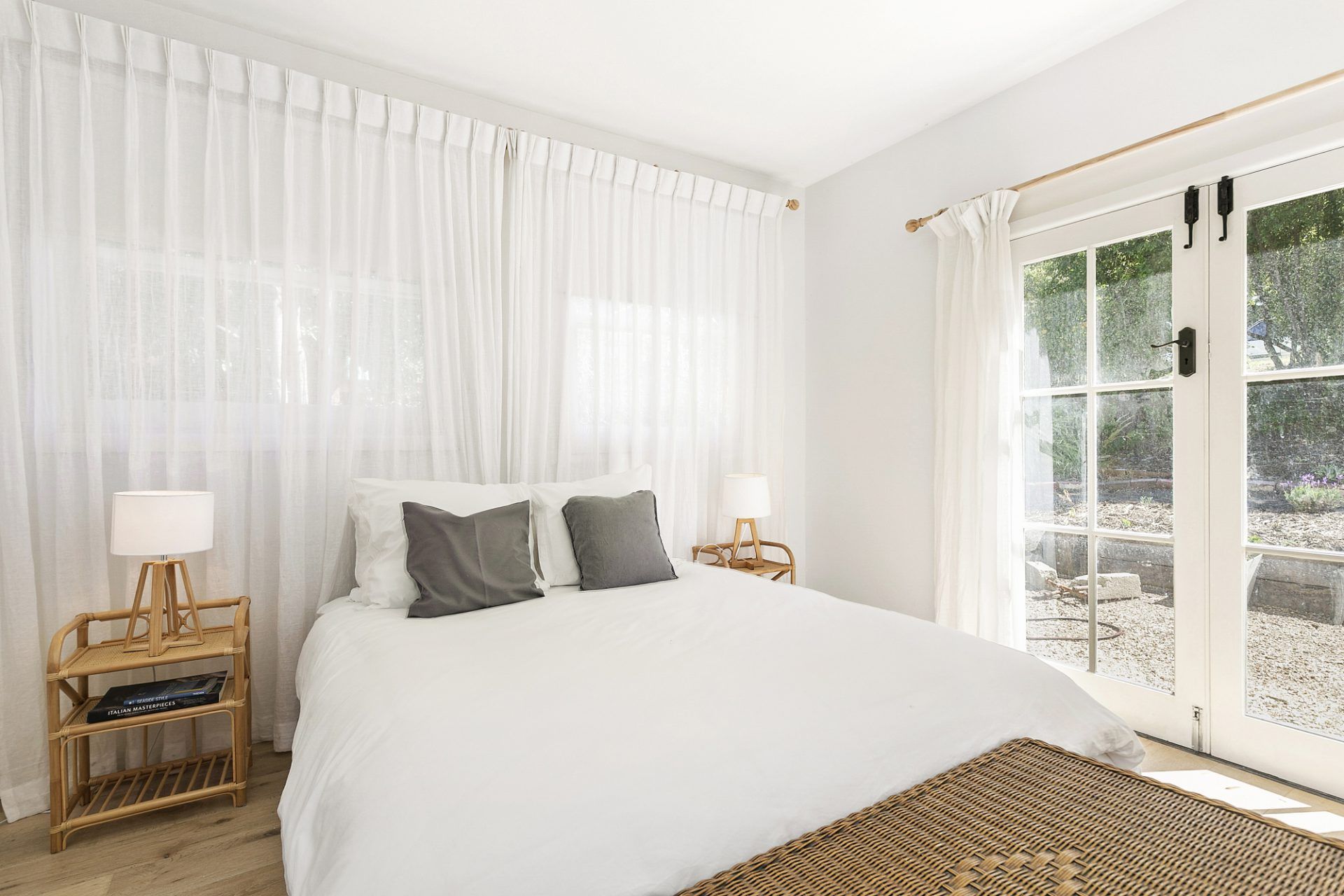 Bedrooms are beautifully furnished with soft tones and a luxurious but relaxed retro beach feel.