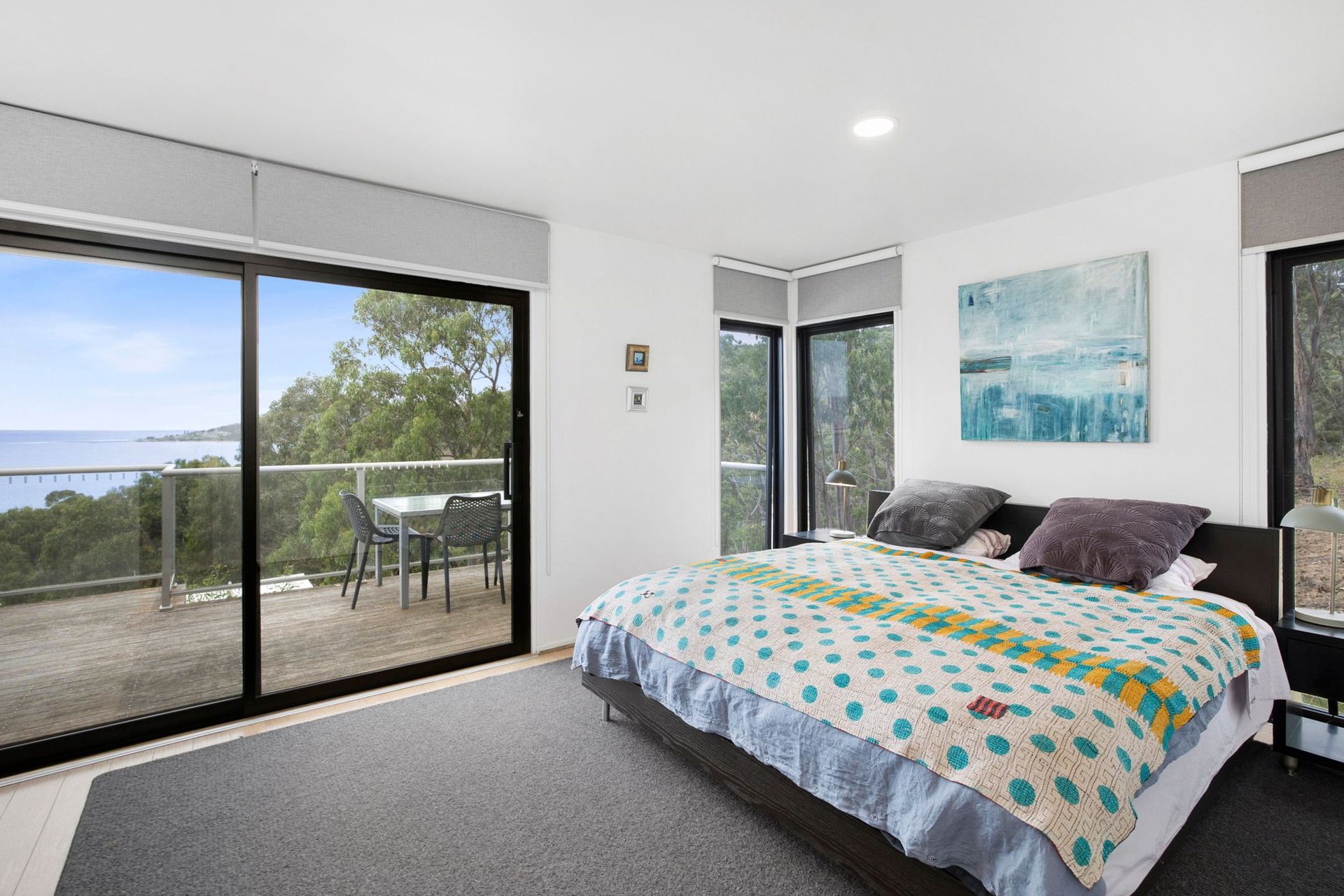 Summer by the Bay is a short 5 min drive to Lorne cafes, shops and supermarket and a short stroll to an all year round dog-friendly beach via the Stony Creek bridge, without having to cross the Great Ocean Road. Set right next to a national park, you can sit back on the deck, relax and enjoy the rustle of the trees and stunning ocean views with a beverage in hand, all at the same time!