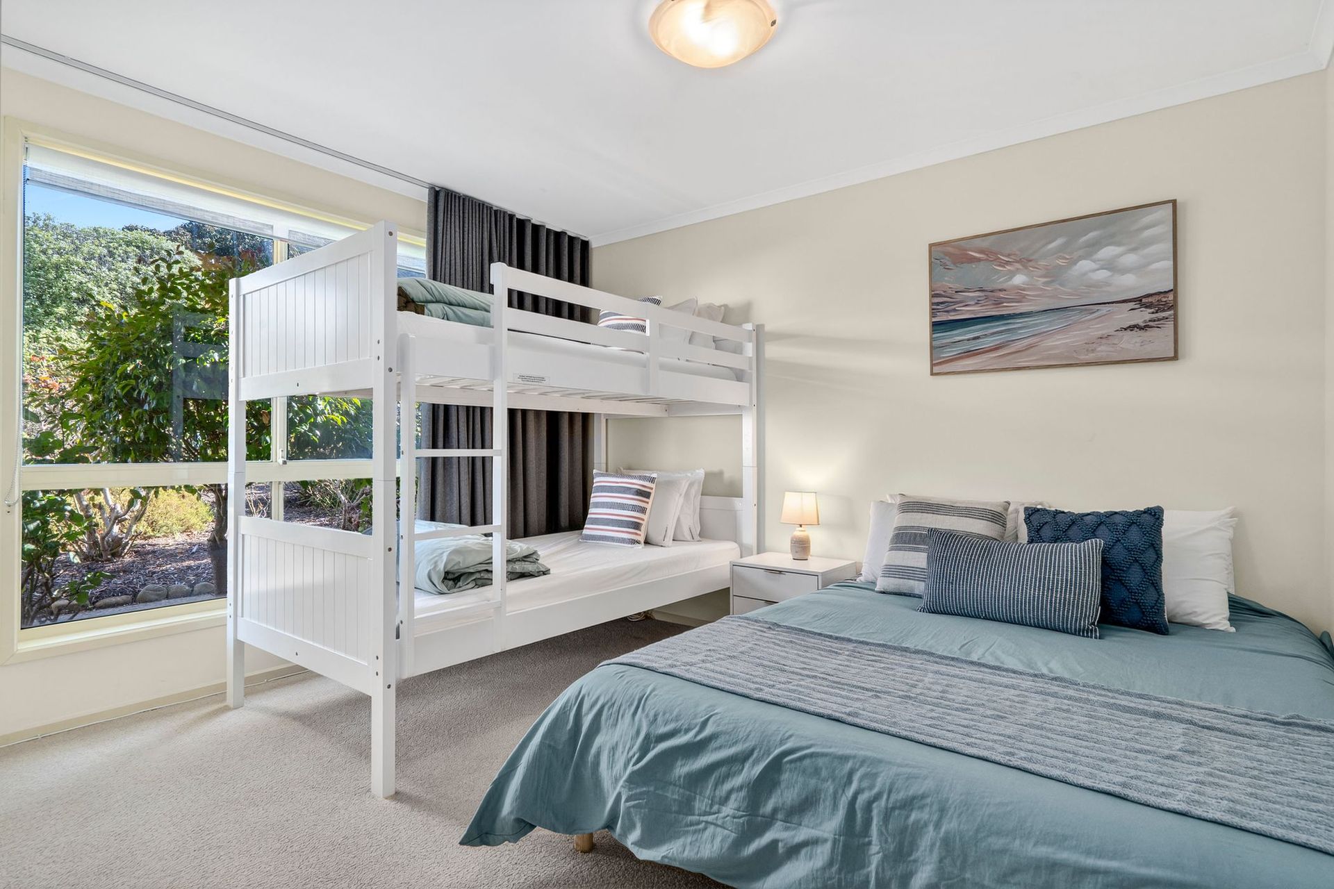 The home comfortably accommodates up to 10 guests across three well-appointed bedrooms, including a master suite with an ensuite, walk-in robe and balcony access. Additional bedrooms are perfect for families, offering flexible bedding options.