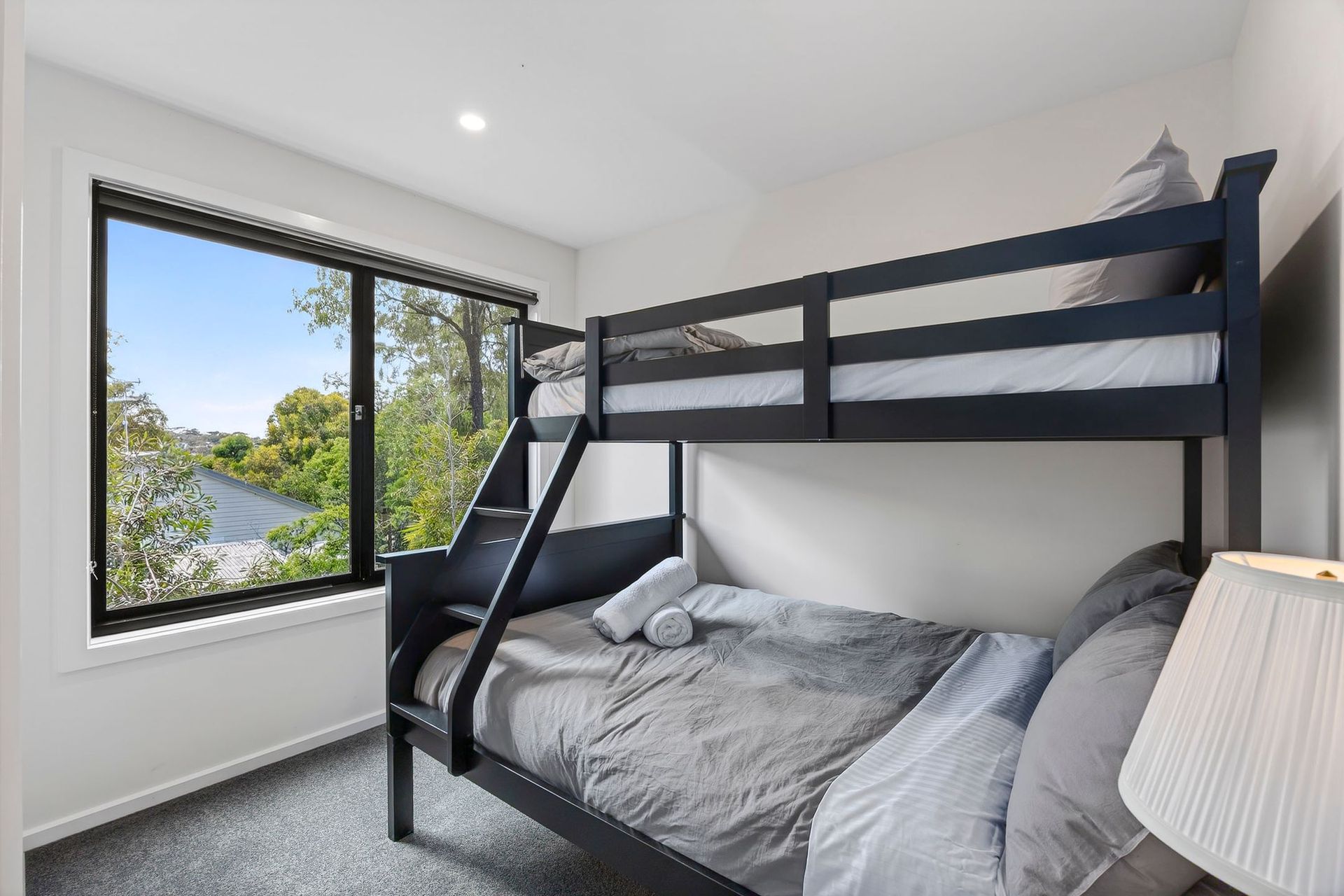 With four comfortable bedrooms, the home suits families, friends, or mixed groups. The master bedroom features a king bed, an en-suite, a walk-in robe, air conditioning, a ceiling fan, and its own television. The additional bedrooms include 2 queen beds, and a single over double bunk, all with built-in robes for convenience. Parking is easy with a garage for one vehicle and two extra off-street spaces. Linen is provided throughout the home, and essential safety features such as smoke detectors are included, ensuring a comfortable and secure stay.