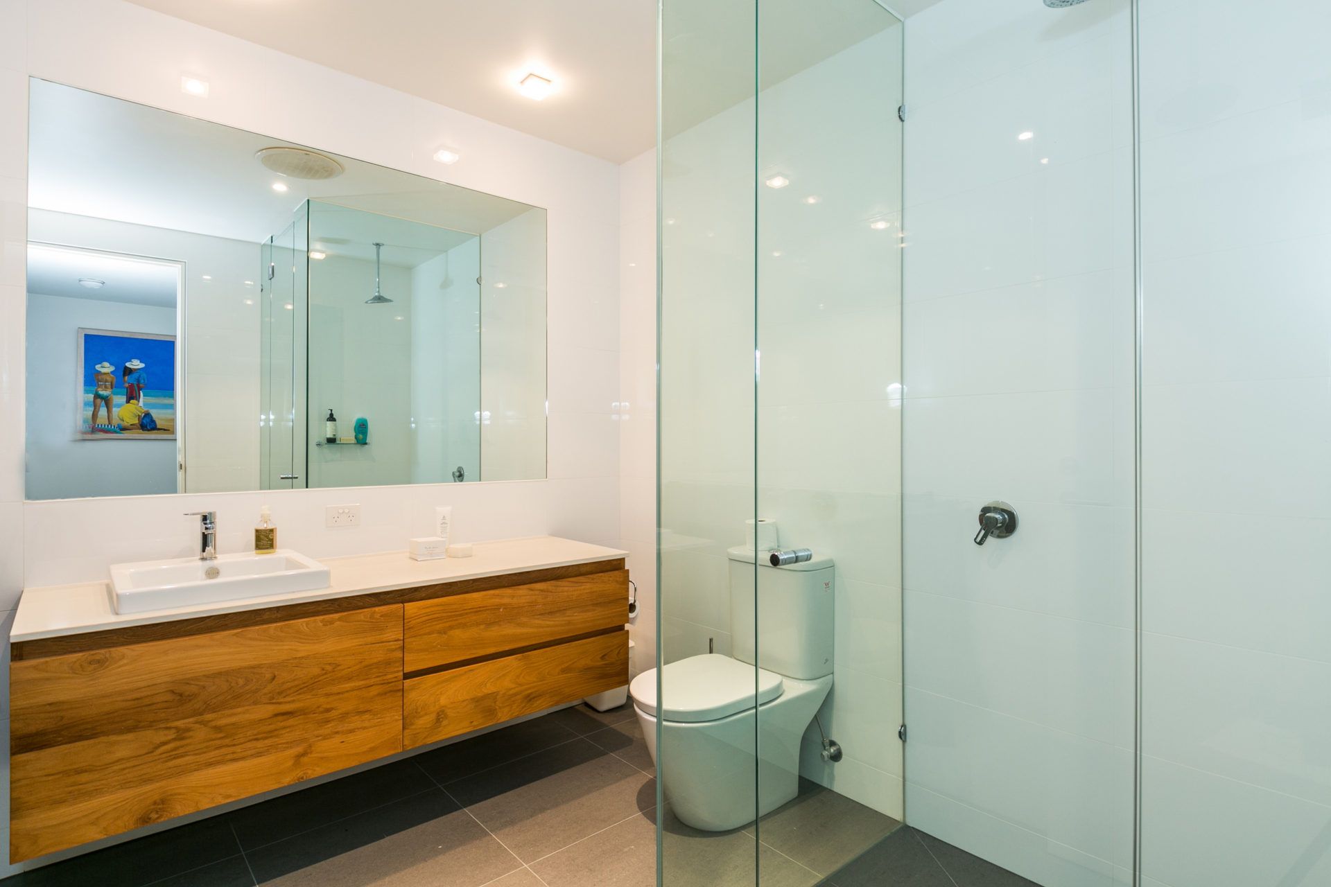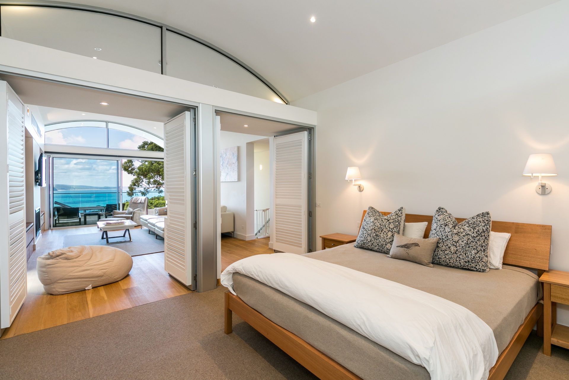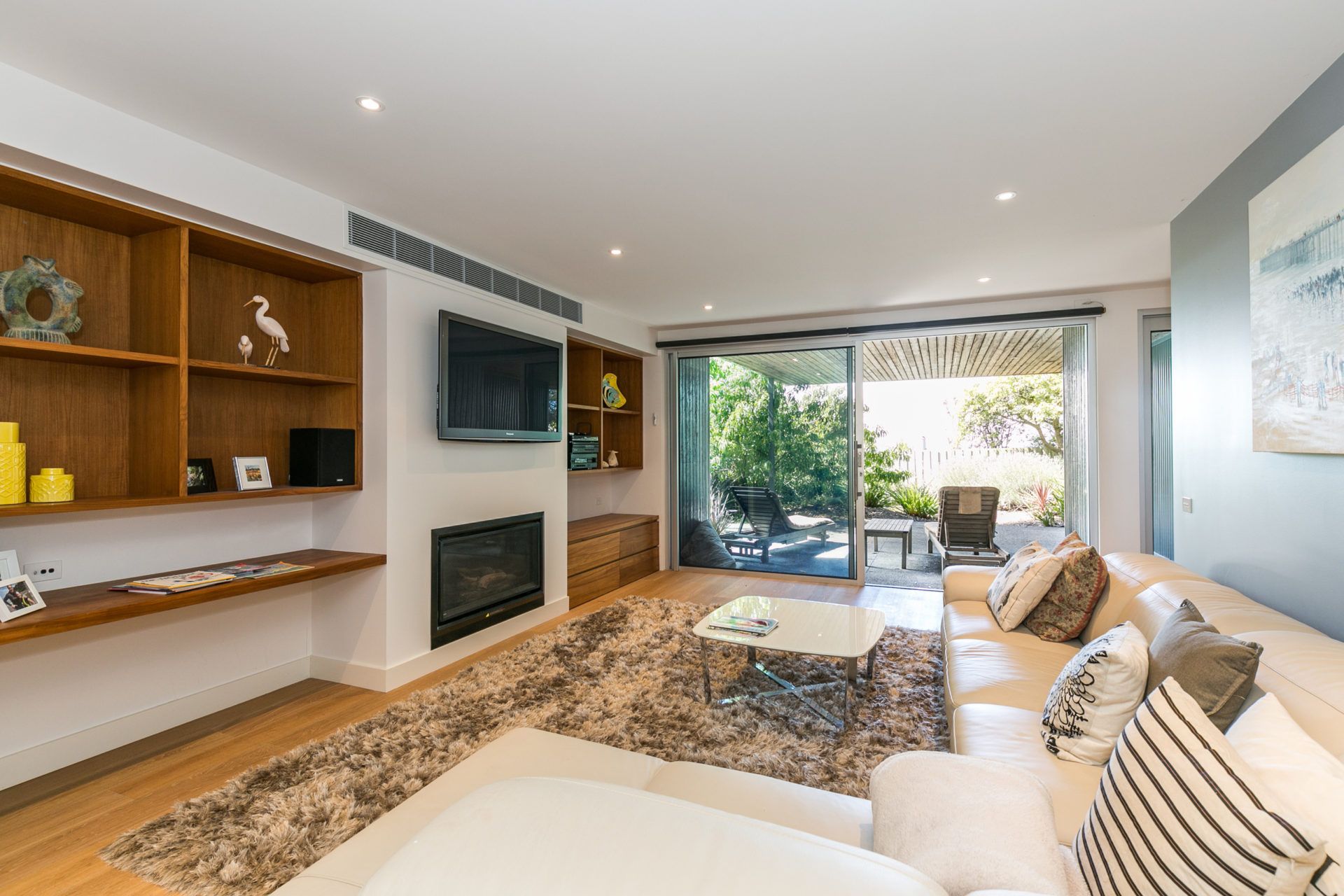 The architectural subtlety of The Pavillion from the street is somewhat deceptive. On entry you will be overwhelmed by the soaring ceilings and abundant natural light that graces the upper level. The kitchen (fitted with extensive stone benches and Miele appliances) and dining area are parallel to but separate from the main living area and open out onto an expansive deck which is partially undercover and includes an extended eating space. Whether dining, entertaining, reading, finding a quiet place in the sun or just sitting and drinking in the splendid view this al fresco space is indeed the central hub of The Pavillion.