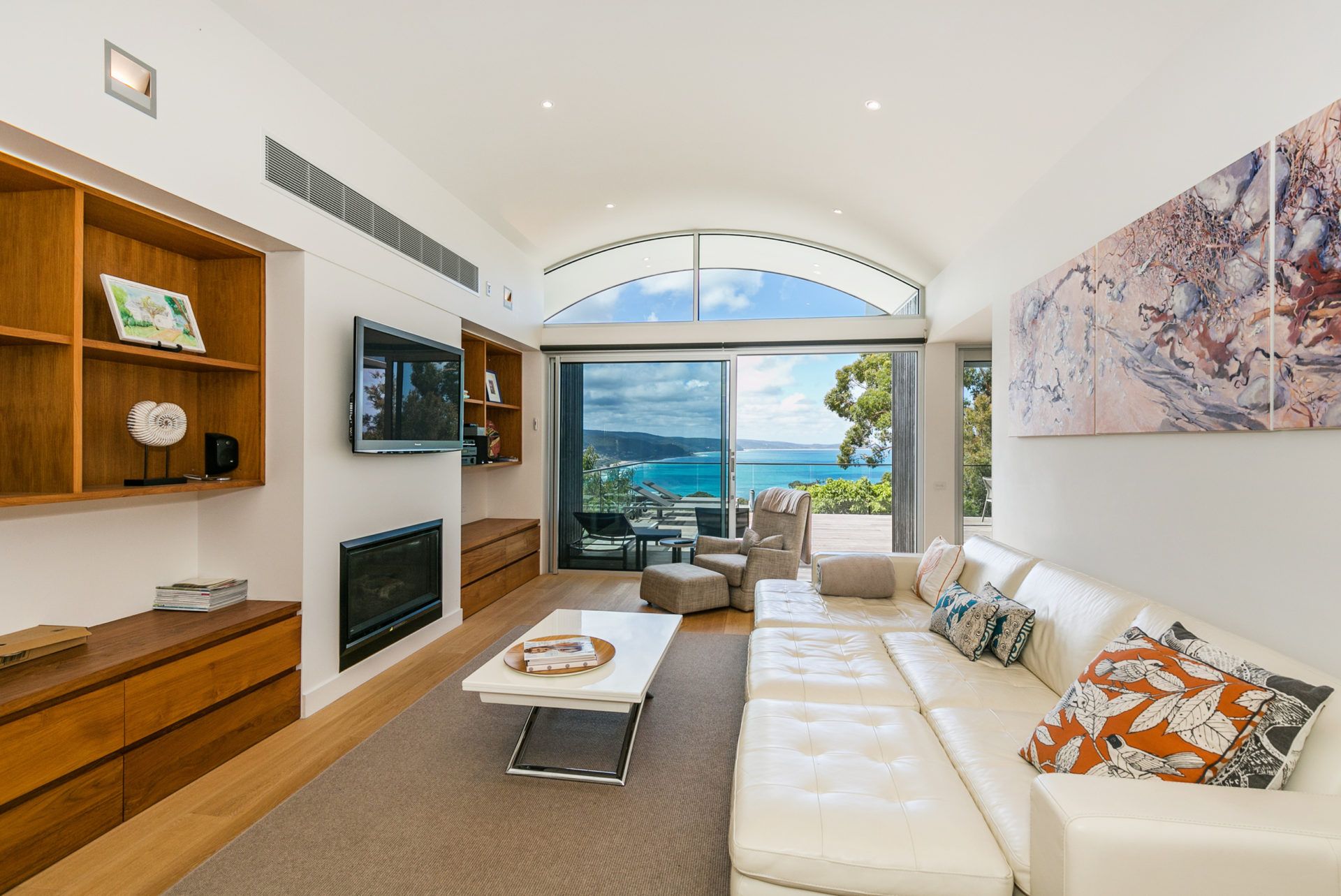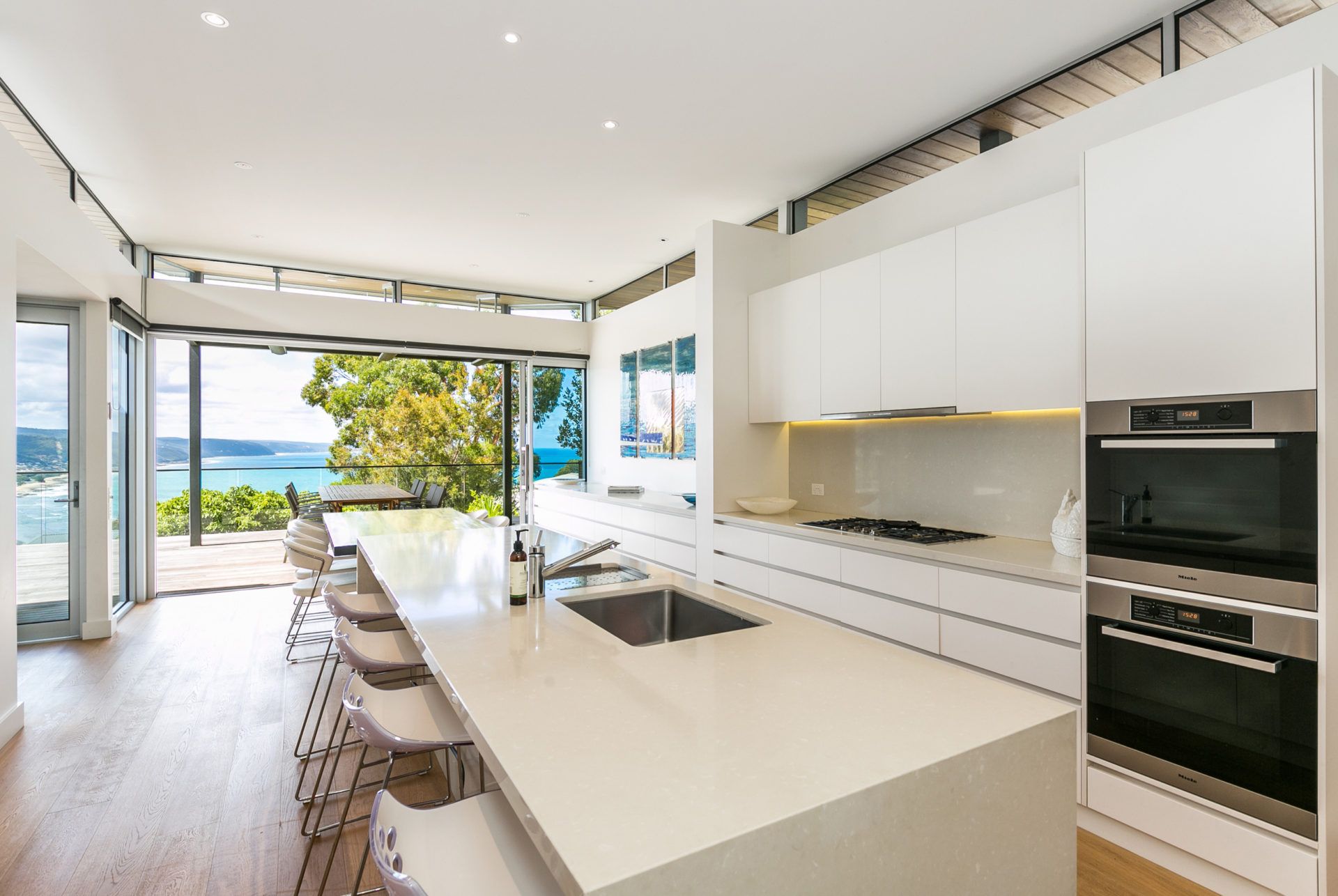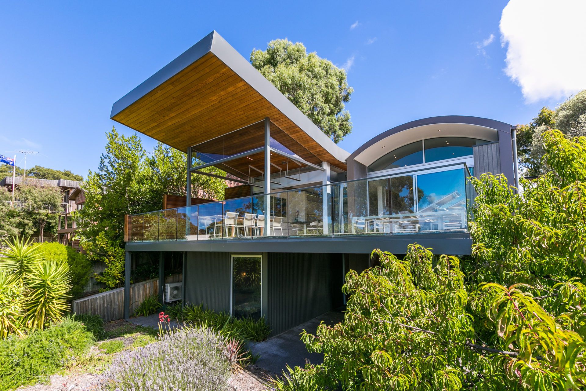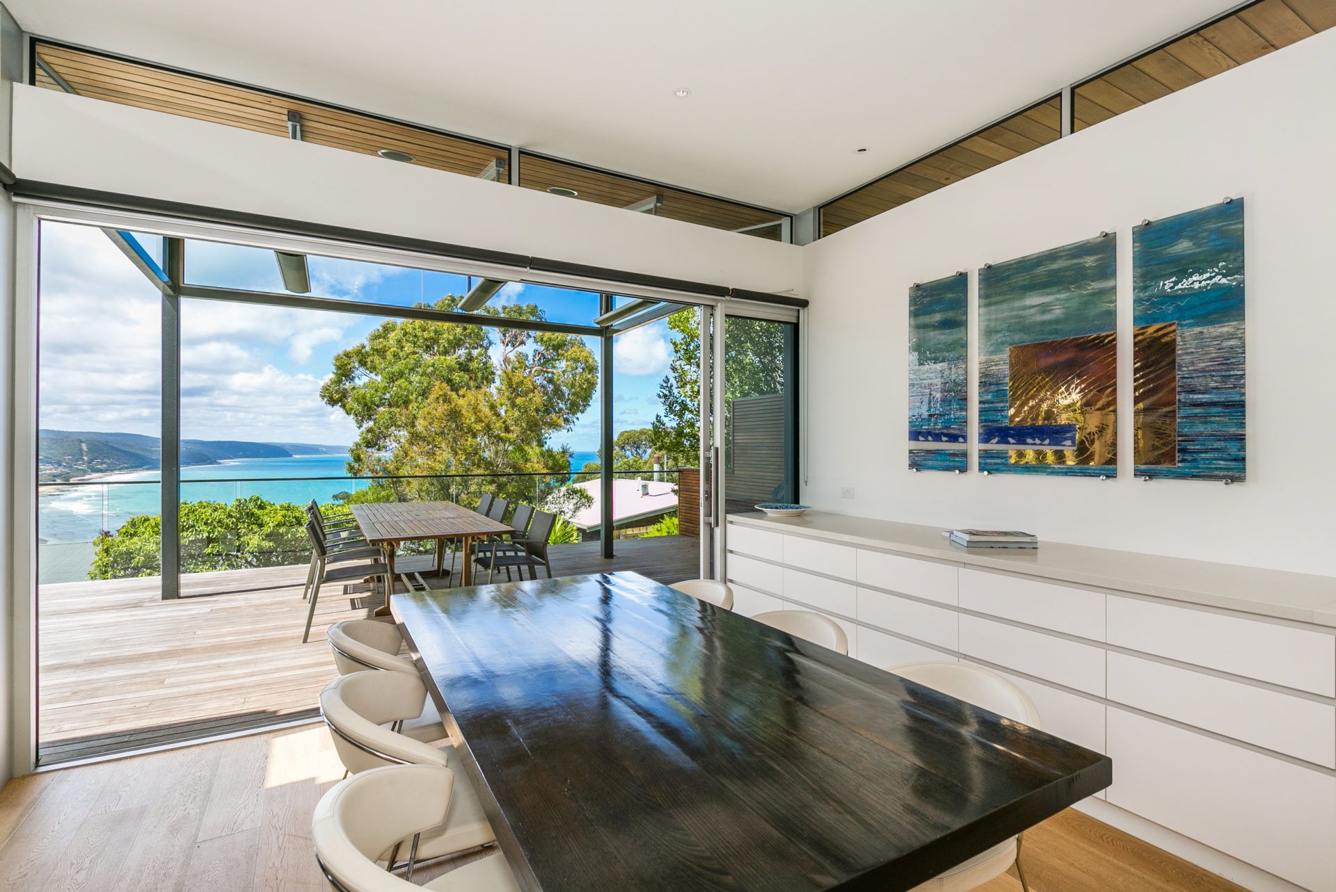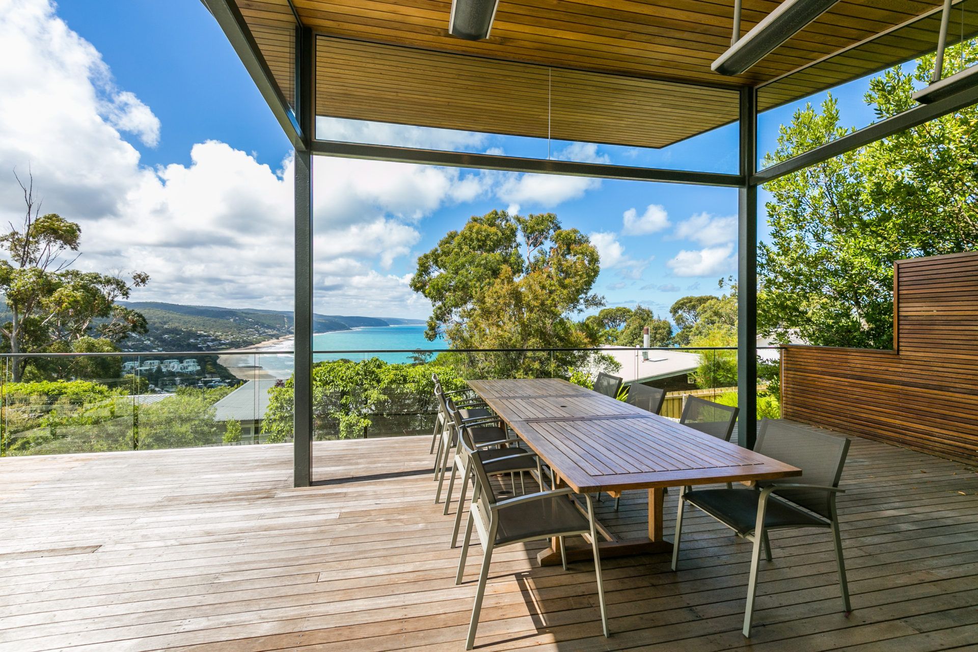 The Pavillion is a four bedroom luxury house with exceptional elevated views of Louttit Bay and the Surf Coast. It is located a short 10 minute walk from the shops and from the Surf Club.