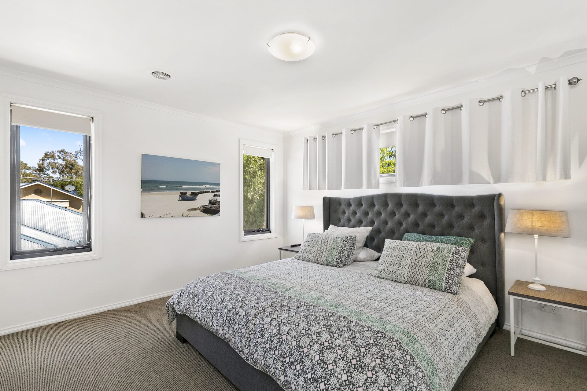 3 large bedrooms, two bathrooms, built in robes, central heating, private driveway and fully fenced yard for your fury friends. The master bedroom has a king size bed plus ensuite. Bedroom 2 with queen bed, tri-bunks and a queen size bed in bedroom 3.