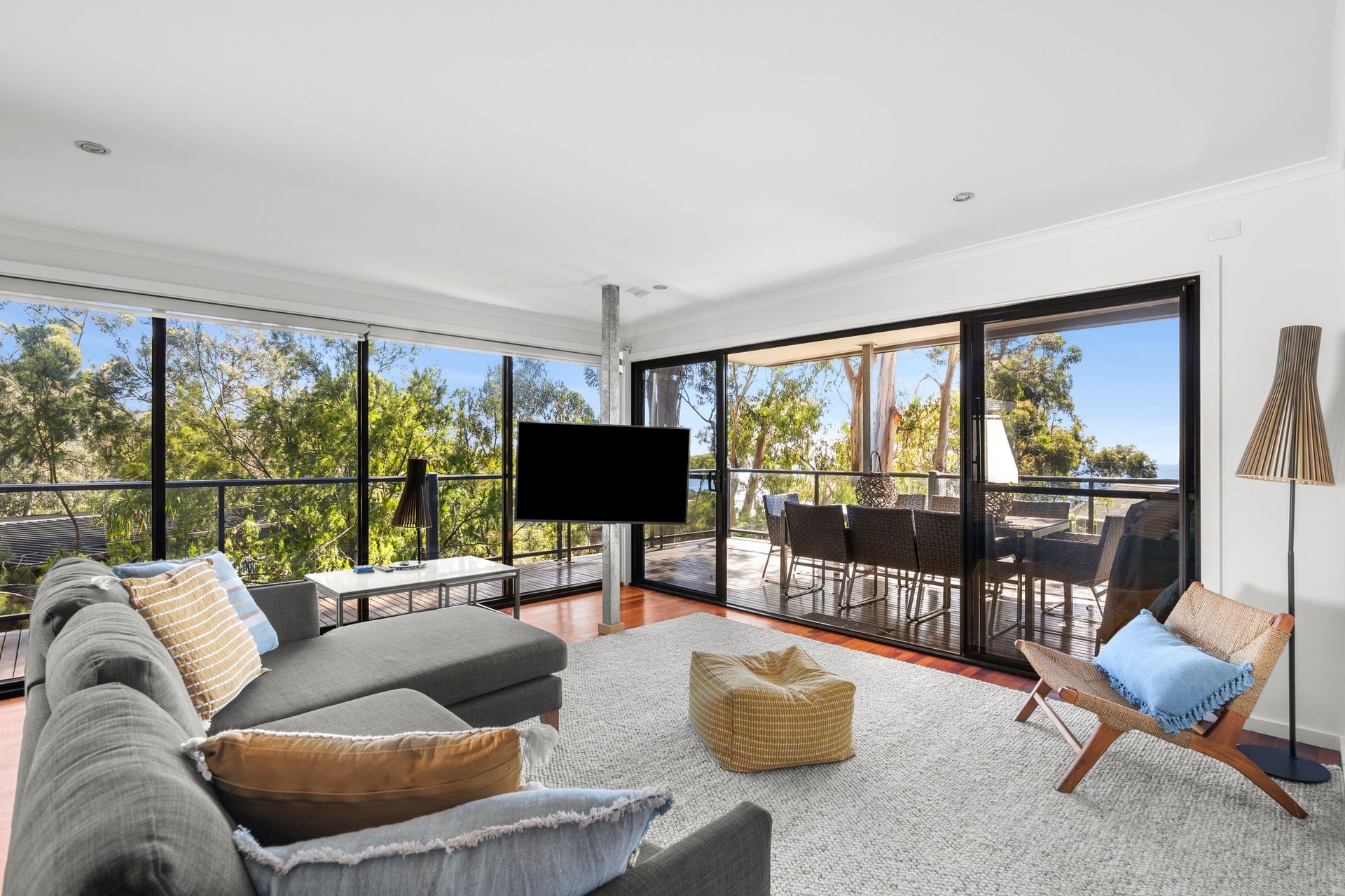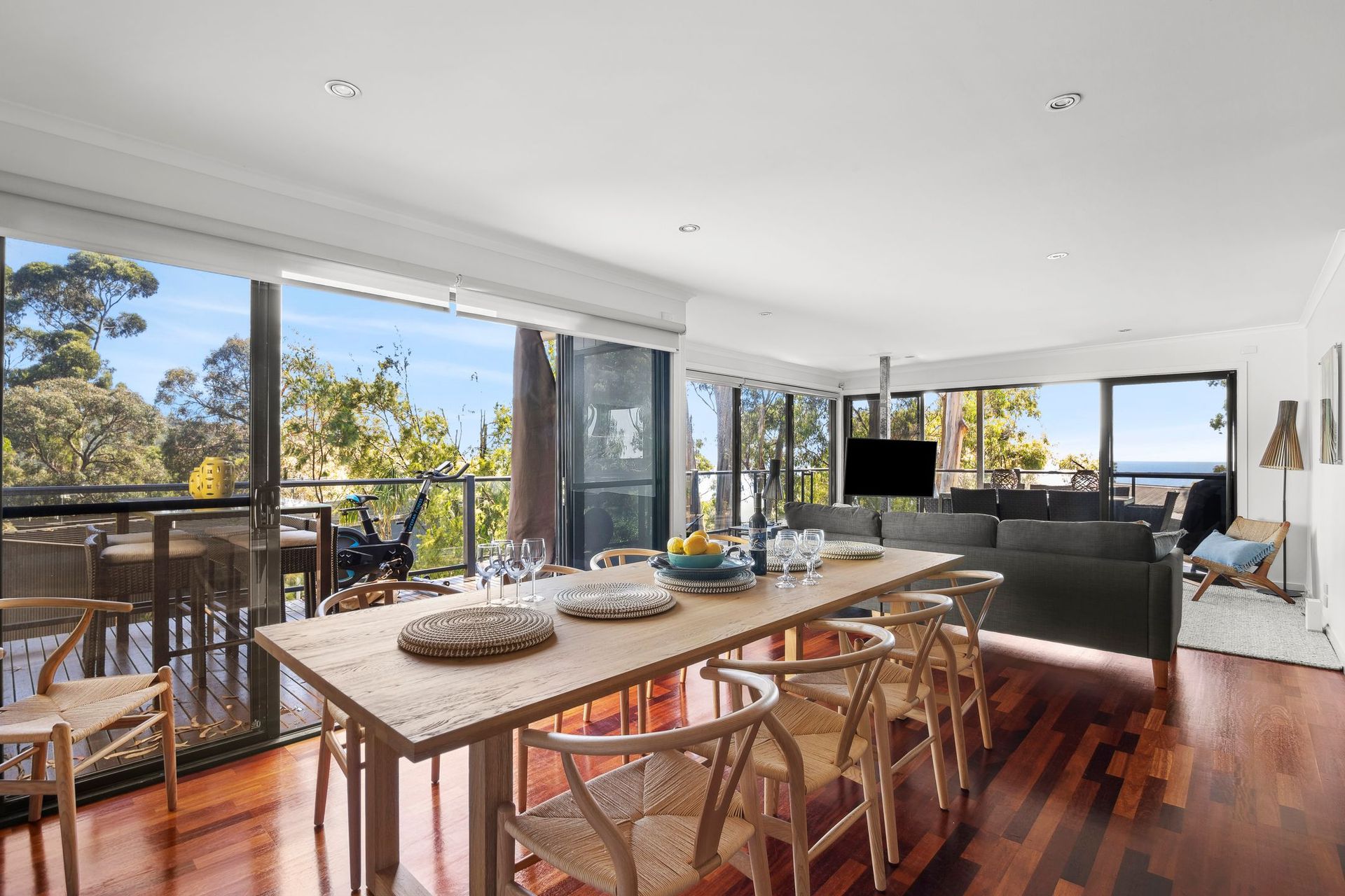 Discover View Bank, a hidden gem nestled in the heart of the bush, offering breathtaking ocean views. Step into the lower lounge room where you'll find a cozy ambiance created by a TV and fireplace, providing the perfect setting for relaxation and entertainment. As you make your way to the upper lounge room, prepare to be captivated by panoramic views that stretch as far as the eye can see. Immerse yourself in the beauty of the surrounding landscape while enjoying the comfort of this inviting space. View Bank offers three spacious bedrooms that can accommodate up to 8 guests.