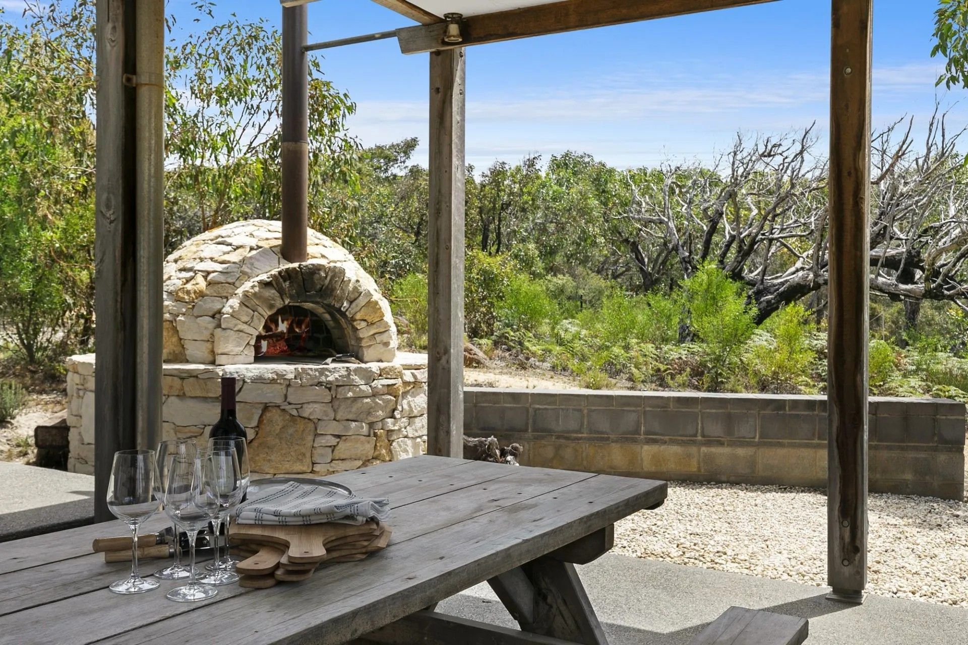 For a start, Wind-Forms space and design is a rare find. The house itself sits on 70 private acres of coastal heath. A long winding driveway meanders its way from the backside of the ridge through native bushland to the ridgeline, where you're greeted by spectacular surroundings and outdoor features. These include ample parking, both undercover and driveway, a tennis court, bocce pitch, in-ground trampoline and kids play area, dam with private jetty, wood fire oven and more. And this is before you've even set foot inside.