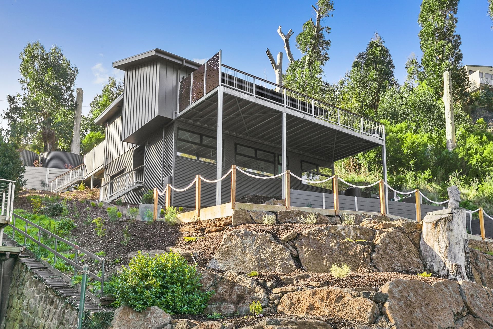 Finished in Jan 2020, Wye9 captures beautiful treetop and beach views and is an ideal place to enjoy the lovely coastal hamlet of Wye River. Perfectly suited to couples or a small family, Wye9 features stylish multiple living areas across 2 storeys, with open plan kitchen, dining and lounge, a rear deck and an expansive balcony that spans the entire upper level.